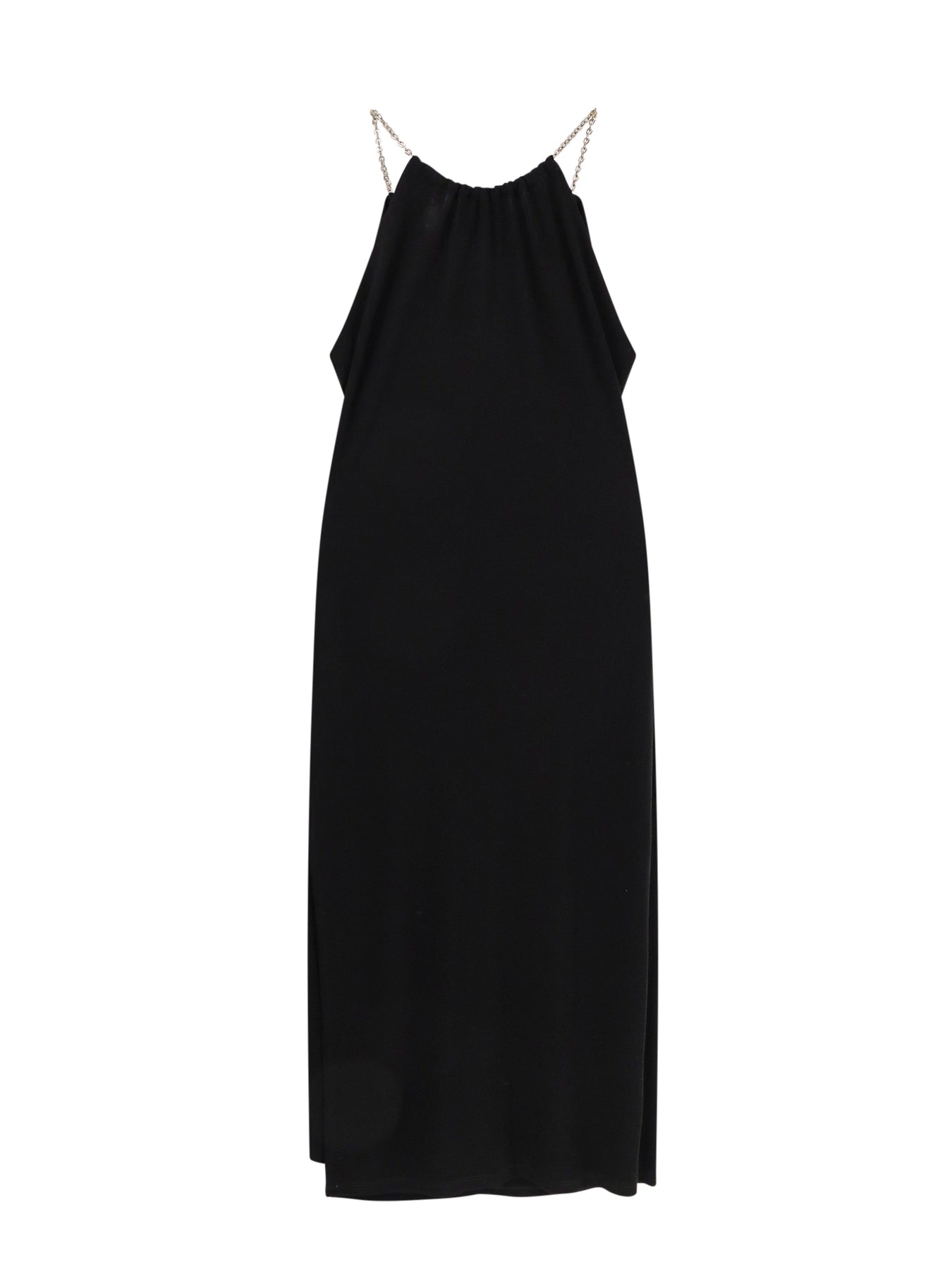 SKU: BW21TT30XH_001 - V-neckline with metal detail sleeveless frontal drapery made in italy 100% viscose