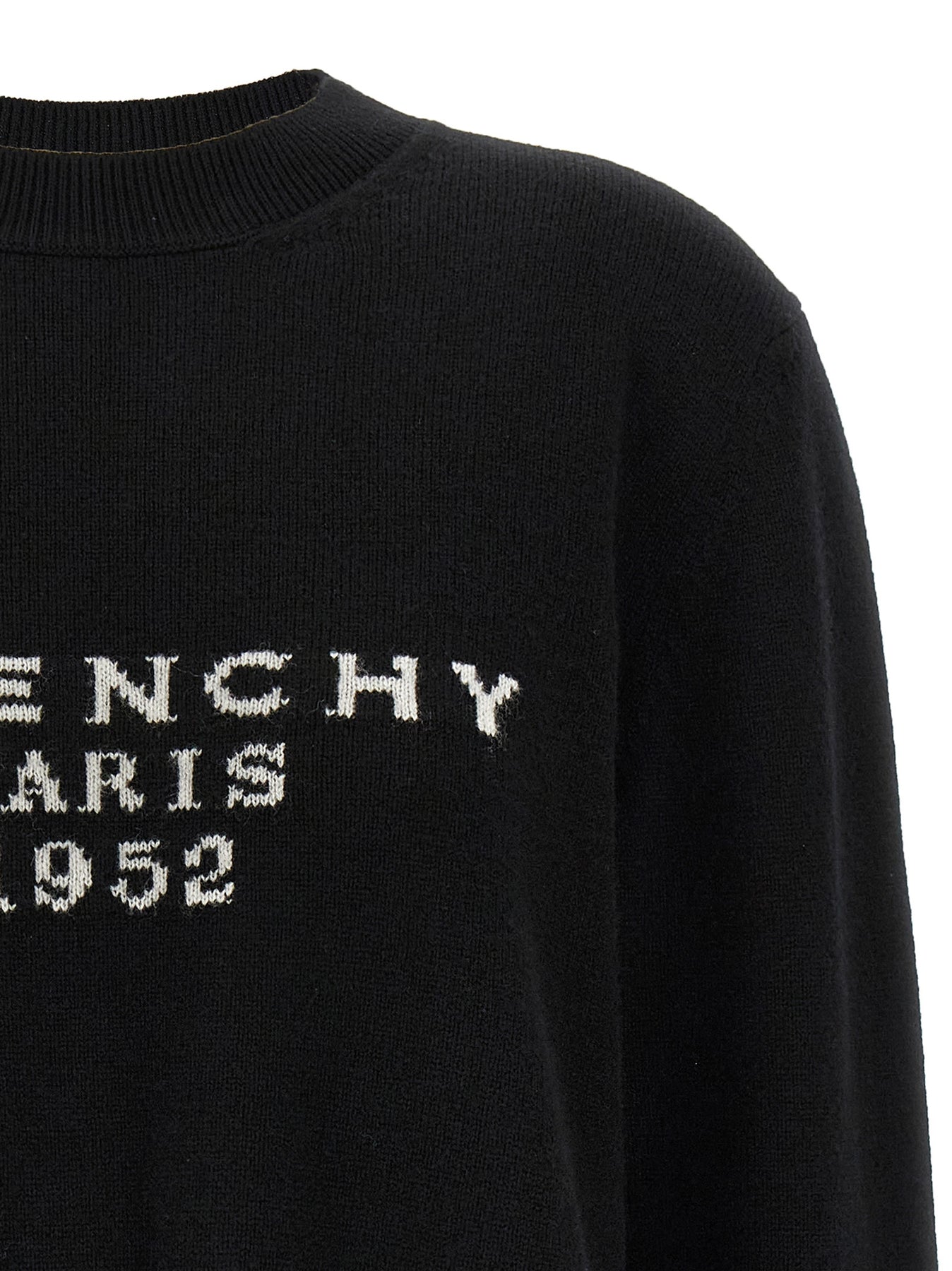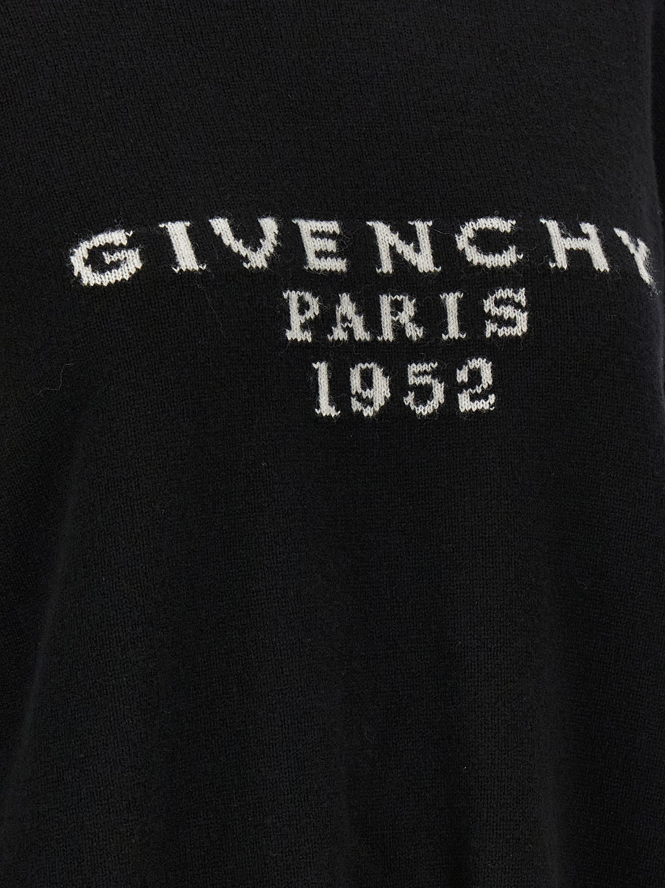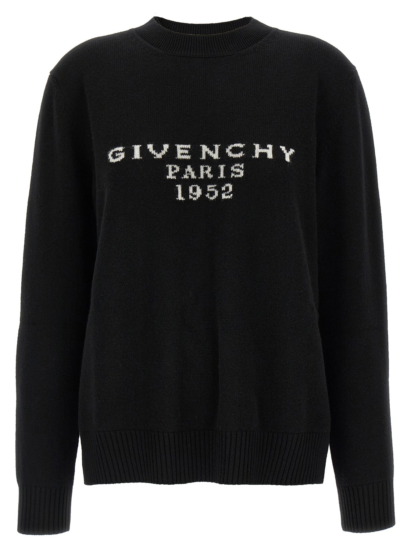 Wool and cashmere sweater with front jacquard 'GIVENCHY Paris 1952', crew neck, long cuffed sleeves and slightly dropped shoulders.