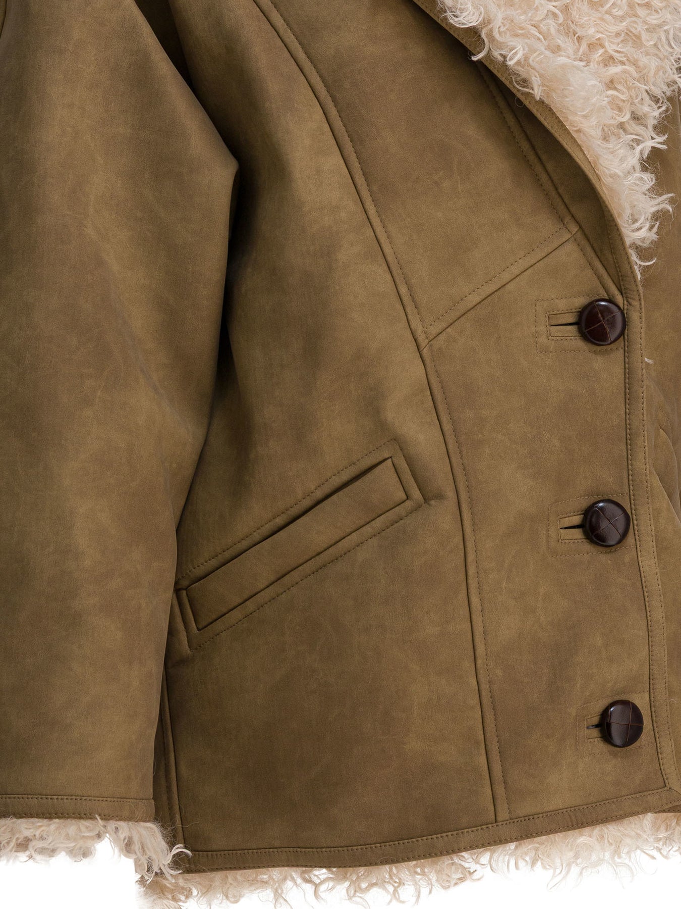 Marant Étoile "Clea" shearling jacket "Clea" with a midi line, made of shearling-effect faux fur. The structure features a defined silhouette with a shawl collar, front button closure and long sleeves. Side pockets are inserted with raglan construction. The cut follows essential lines that facilitate layering. The construction focuses on synthetic materials with a soft finish. || - Faux fur shearling effect - Shawl collar - Front button closure - Raglan side pockets