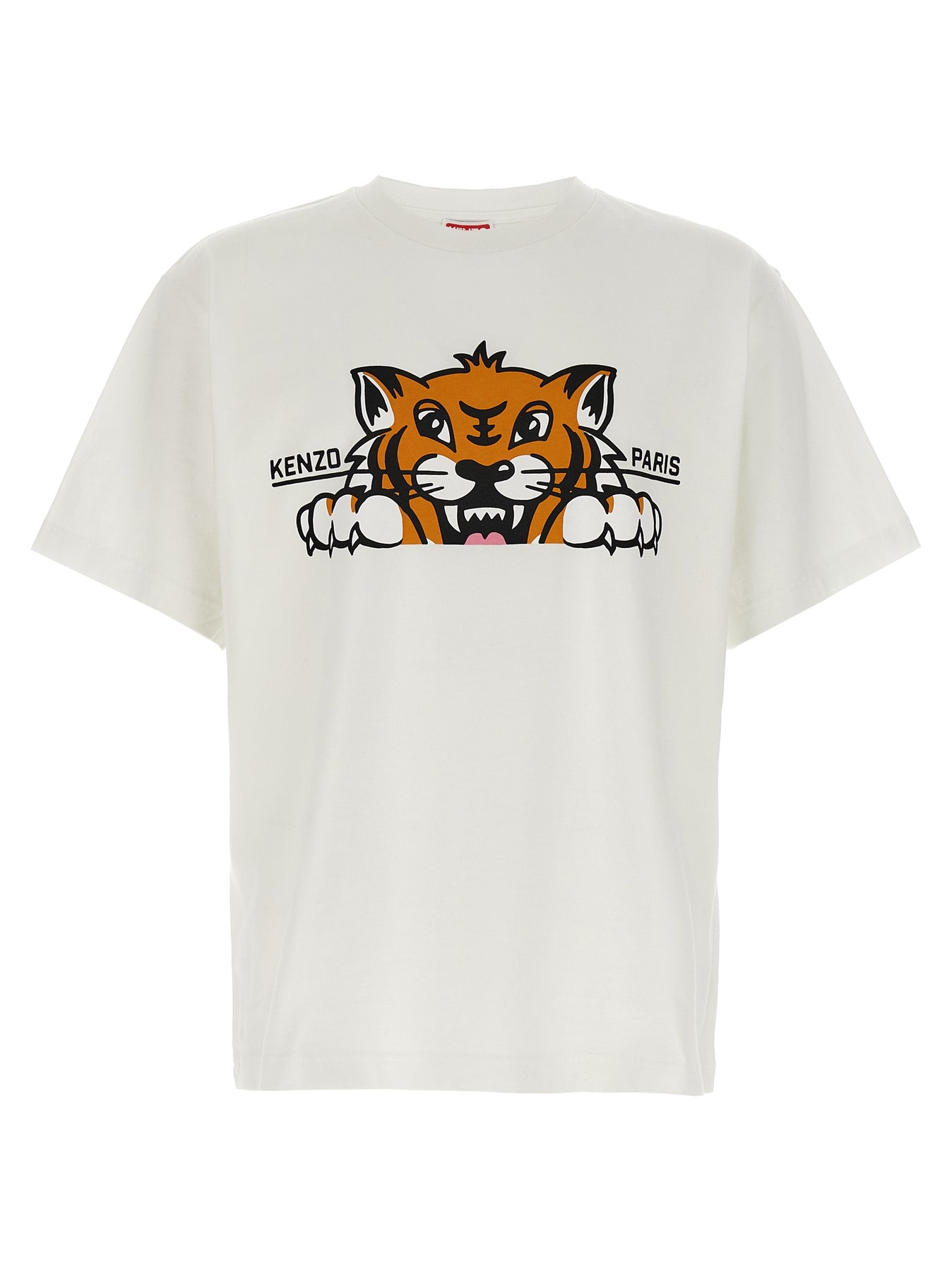 'Happy Kenzo' cotton crew neck t-shirt with front and back logo print, short sleeves.