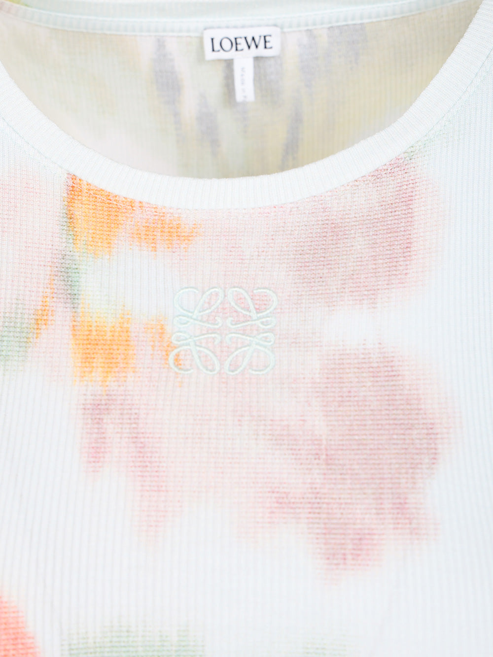 Ribbed cotton and silk dress by Loewe, with deep neckline, side slit and Anagram embroidery applied on the front