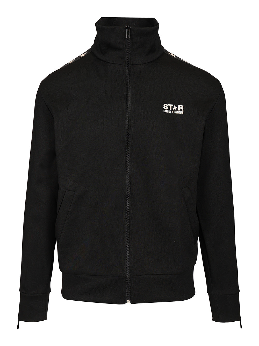 Track jacket in technical jersey, high neck, zip fastening, elasticated hem and cuffs, band with stars on the sleeve and star print