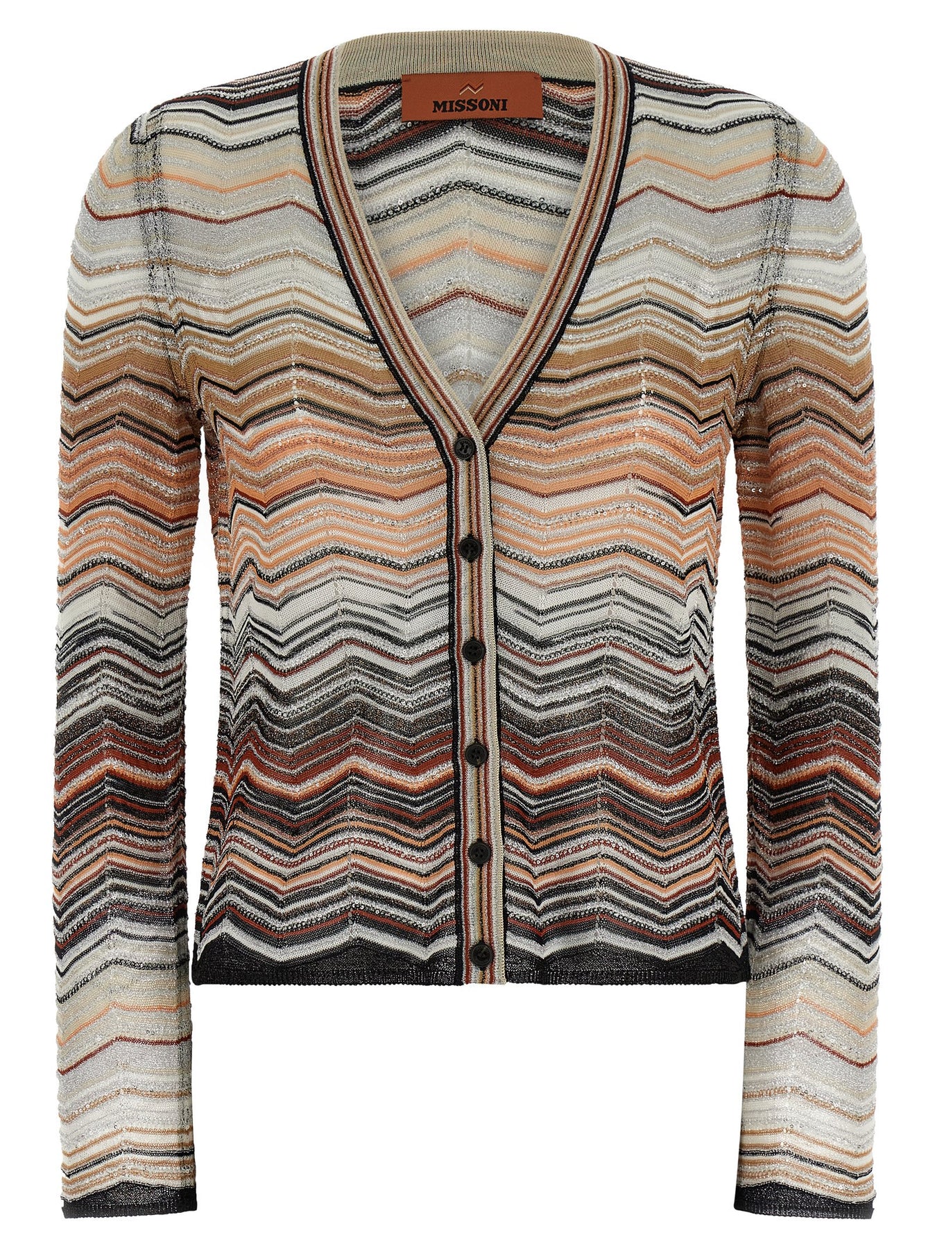 Chevron Lamé Cardigan Sweaters And Cardigans Brown