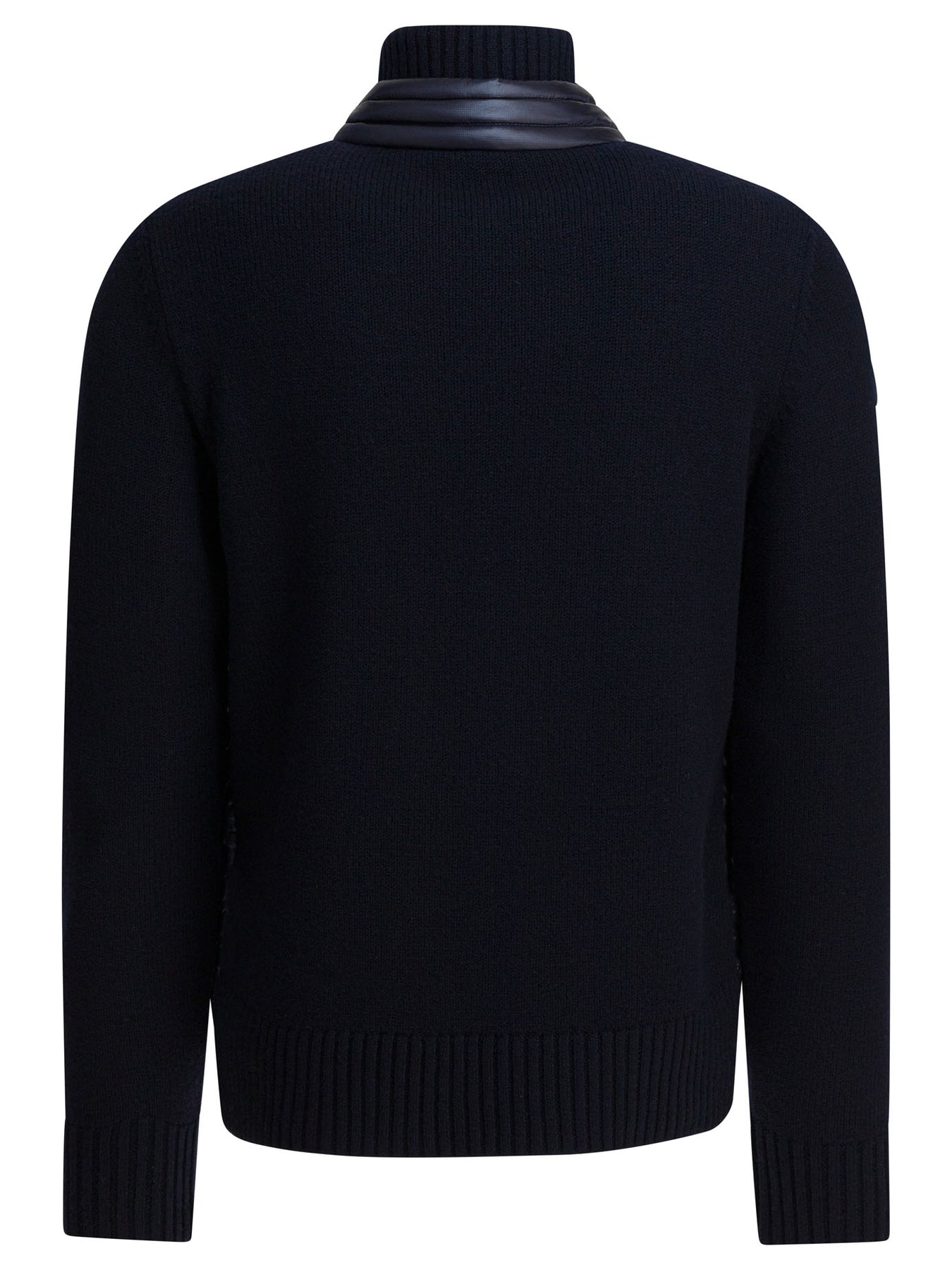 Moncler Grenoble "Tricot" padded jacket made with a nylon body and down and down inner padding. Knitted sleeves add a different compactness to the feel than the middle part. The front opening is regulated by a full-length zipper. The cut shows a slightly structured silhouette, free of superfluous decorative elements and defined by essential seams. Two side pockets provide functionality of use via zipper closure. || - Moncler logo applied on the sleeve - Knitted sleeves in structural contrast to the nylon body - Central double-slider zipper closure - Two zippered side pockets - Down and feather filling - Regular fit