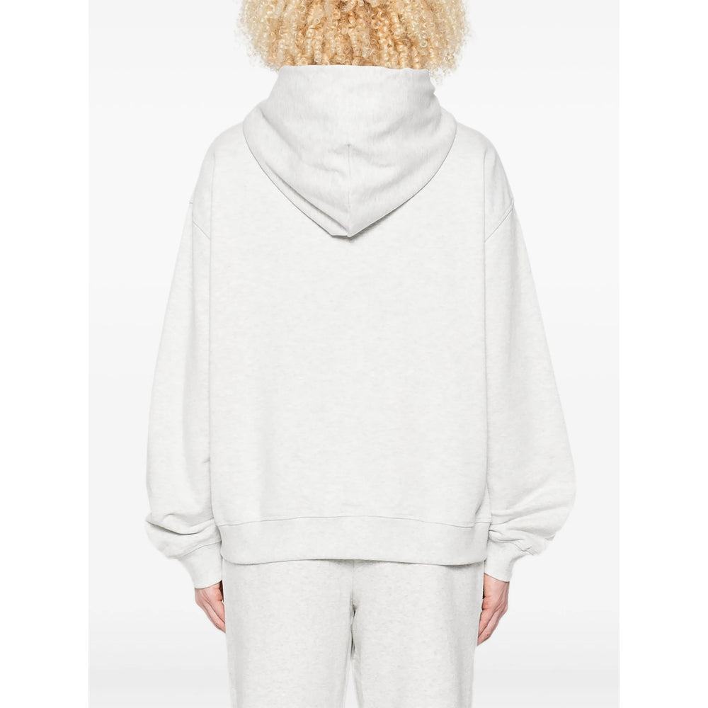 grey logo print hooded neckline long sleeves kangaroo pocket
