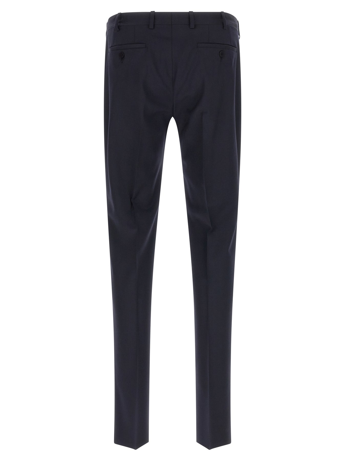 'Lord' wool dress consisting of double-breasted blazer with front button closure, peak lapels with removable metal brooch, breast pocket, flap pockets, cupro lining, two inner pockets, structured shoulder strap, buttonhole cuffs, back slits and trousers with stretched crease, front pockets 'americane', back welt pockets, front zip and button closure, viscose lining.
