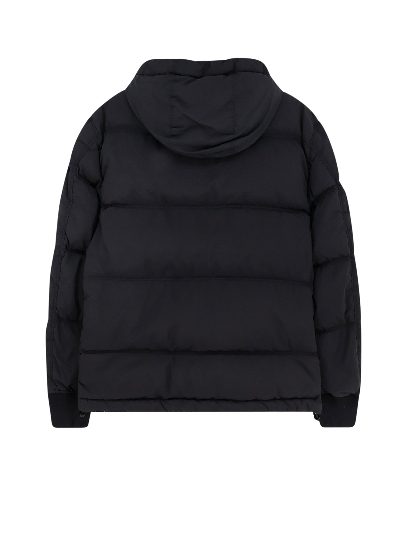 Two-way zip closure and adjustable drawstring hood Two front pockets with flap and button and two front zip pockets Elastic cuffs and adjustable drawstring at the bottom Removable iconic patch on the left sleeve 100% polyamide Filling: 80% down, 20% feathers Lining: 100% polyamide SKU: K2S154100088S0019V0029