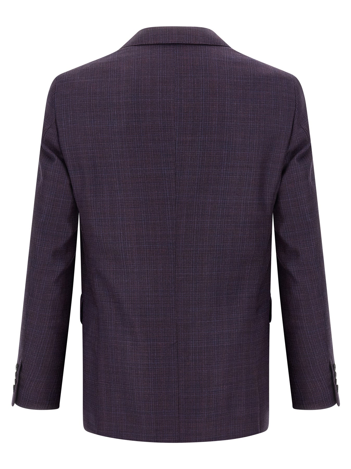 Prince of Wales patterned wool Vicenza single-breasted blazer with front button closure, mirror lapels with removable metal brooch, breast pocket, patch pockets, two inner pockets, buttonhole cuffs, back vents, cupro lining.
