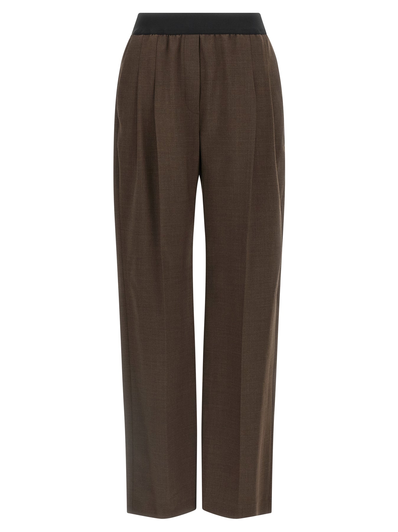 'Niro' mélange virgin wool pants with elastic waistband, trompe l'oeil flap, pins, stretched pleat, pockets, straight leg.