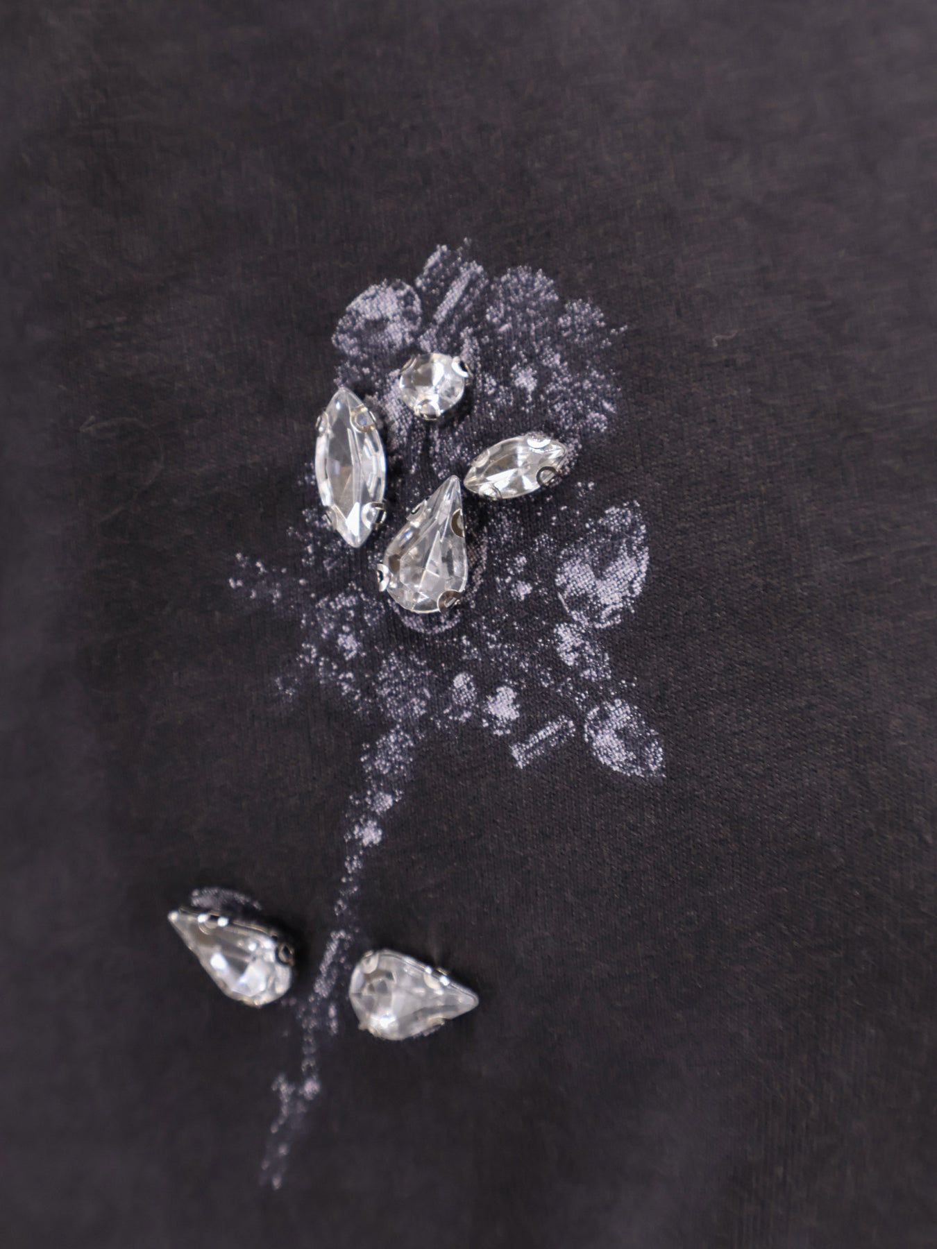 Ribbed crew-neck Short sleeves Print with rhinestones Polyester inserts 100% cotton SKU: 105085A2K2_Z99