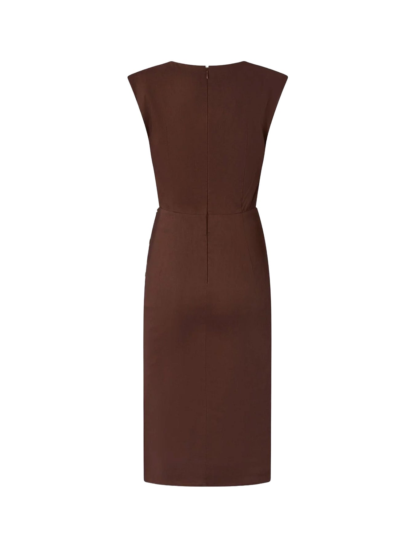 Back zip closure Crewneck Sleeveless Draped with buttons Made in Italy 60% linen, 35% viscose, 5% spandex SKU: 106521A34IL78