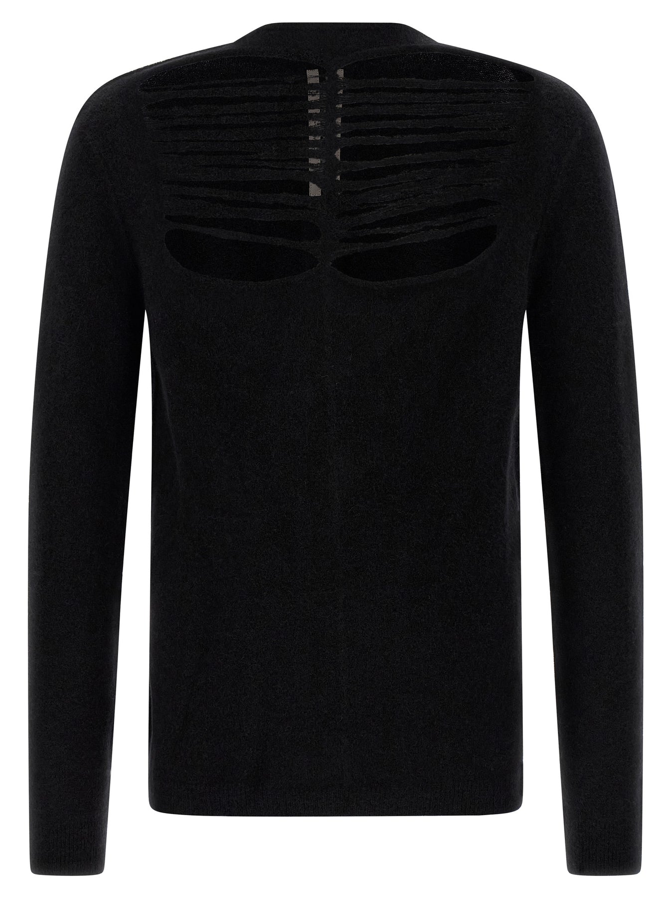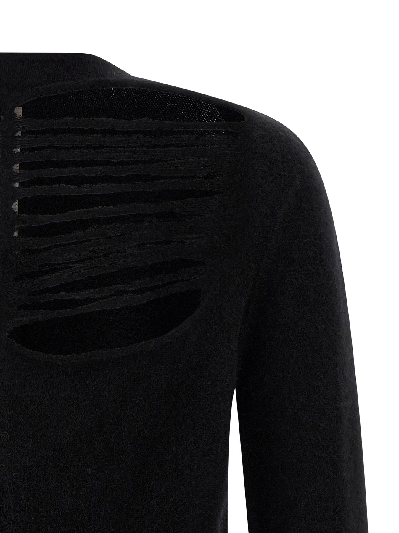 'LS Top' wool sweater with boat neck, front cut-out details, long sleeves.