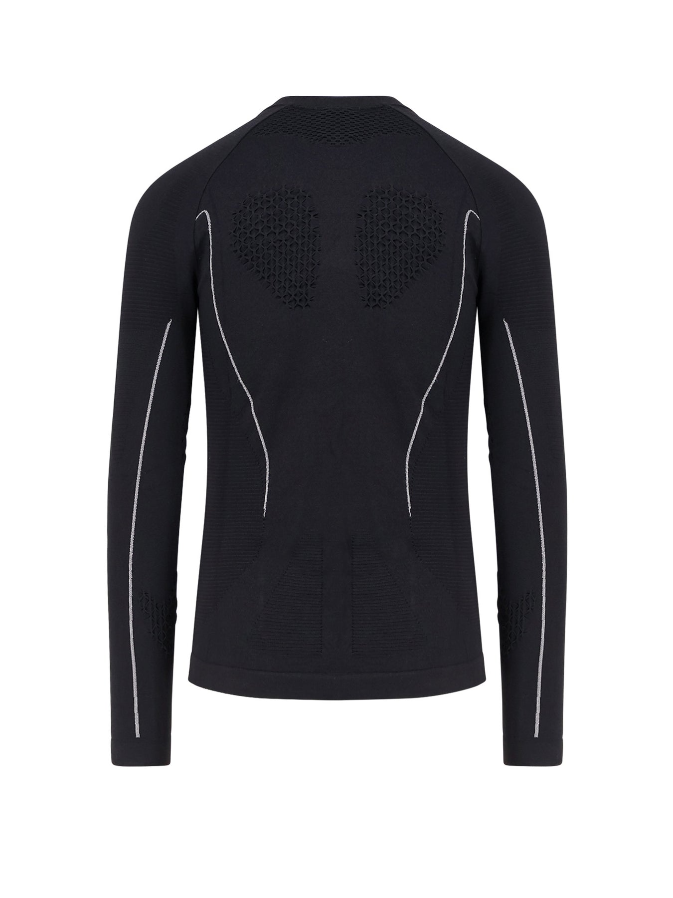 Ribbed crew-neck Long sleeves Logo embroidery Made in Italy 97% polyamide 3% elastane SKU: RBMW0406YA49_BLK0001