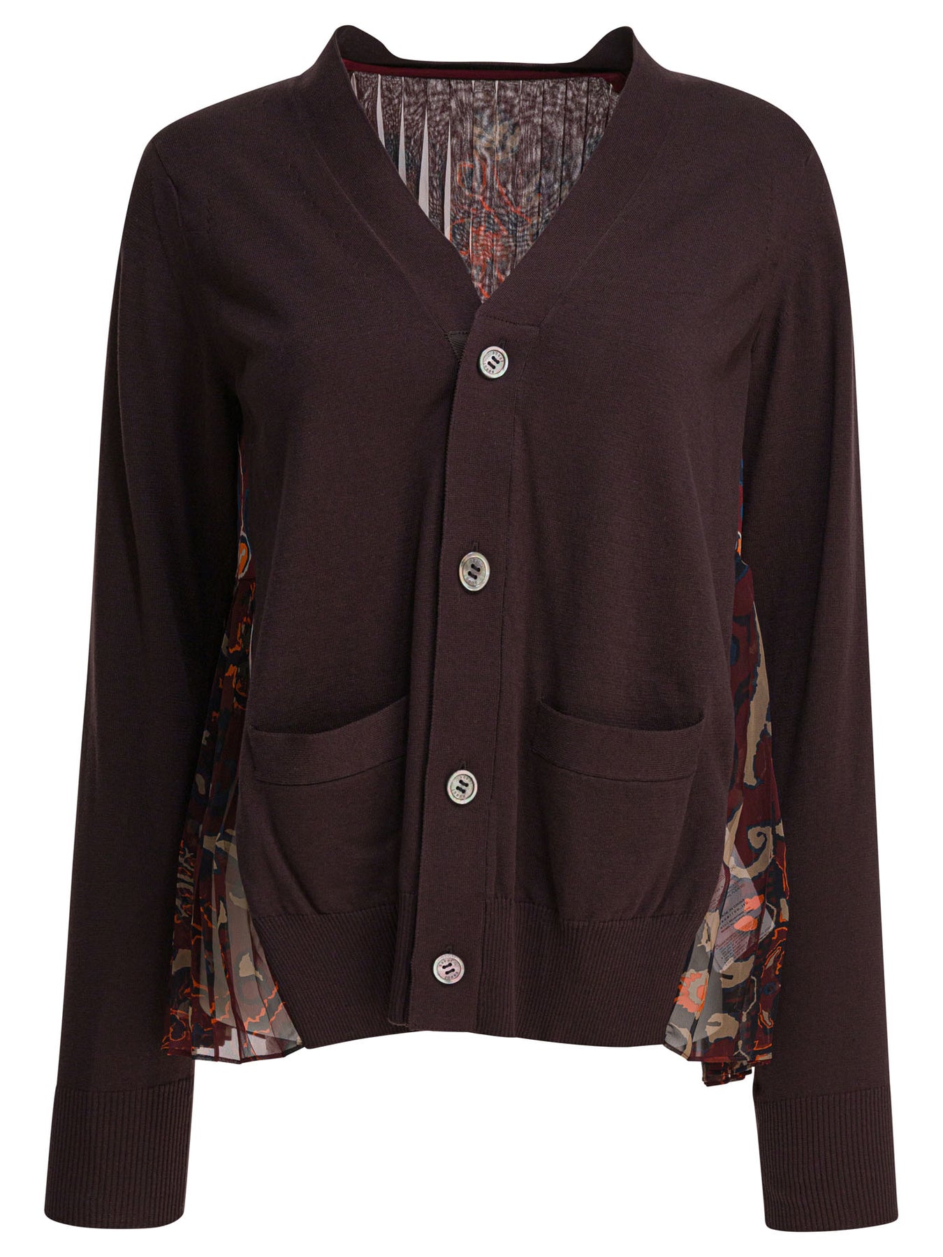 Sacai Cardigan With Floral Print Knitwear - Brown | 436370988a3e2e704d3dac8af1b7ae1d10b41bf1