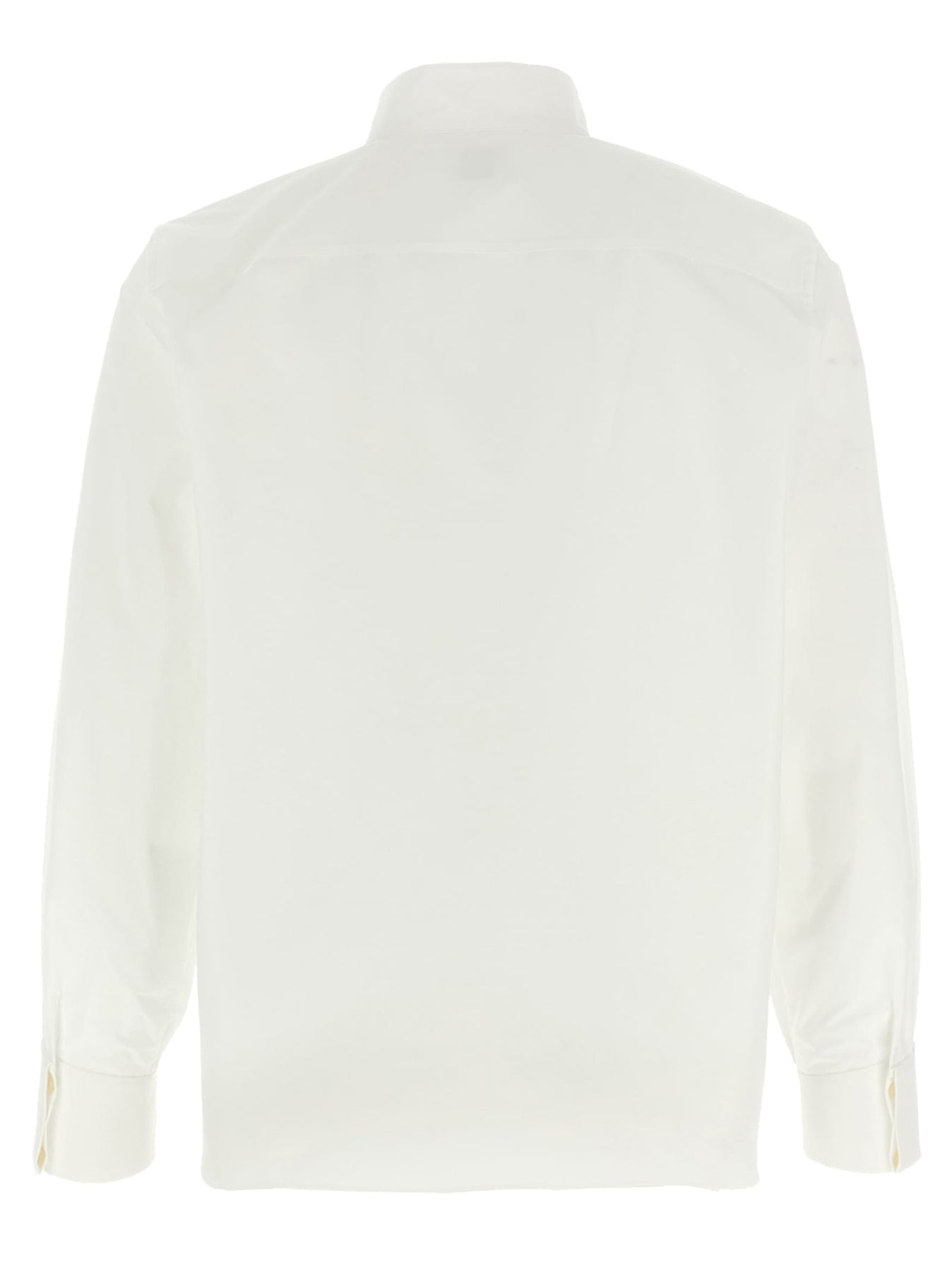shirt with wing collar and straight shoulders. Concealed button fastening at the front Wing collar Cuffs with two hidden buttons Curved hem