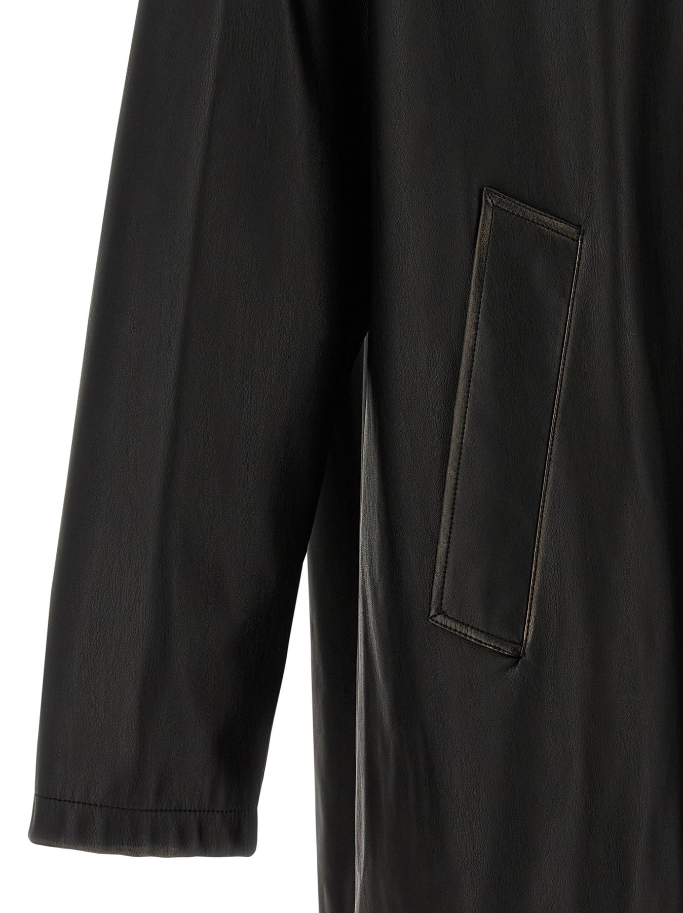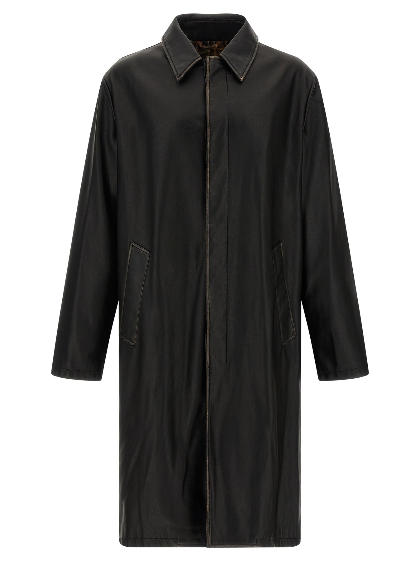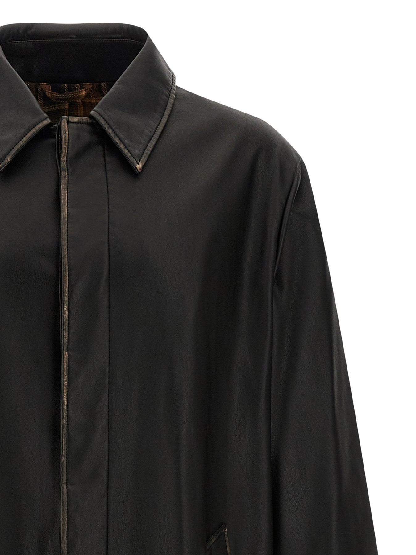 Car coat 'J-Rivers' in distressed leather-effect brushed shiny fabric, check flannel lining, shirt collar, front button closure, pockets, long sleeves with embossed logo, back vent.