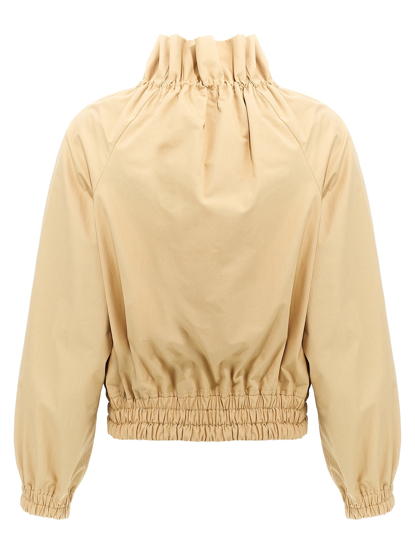 'Voly' jacket in cotton poplin with curled neckline with adjustable drawstring, front zip closure, elastic hem, pockets, long sleeves with elastic cuffs.