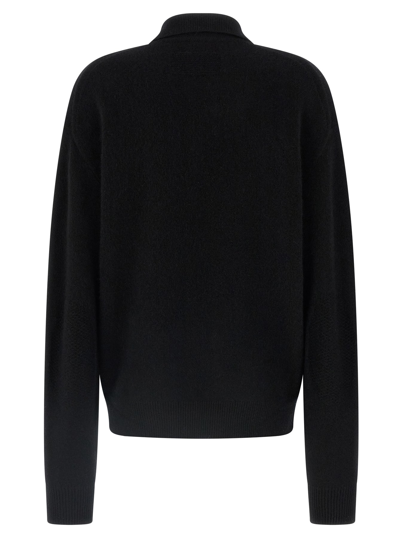 'Allday' medium-weight cashmere polo shirt with collar and buttons, long cuffed sleeves, dropped shoulder and different weave on the elbow.