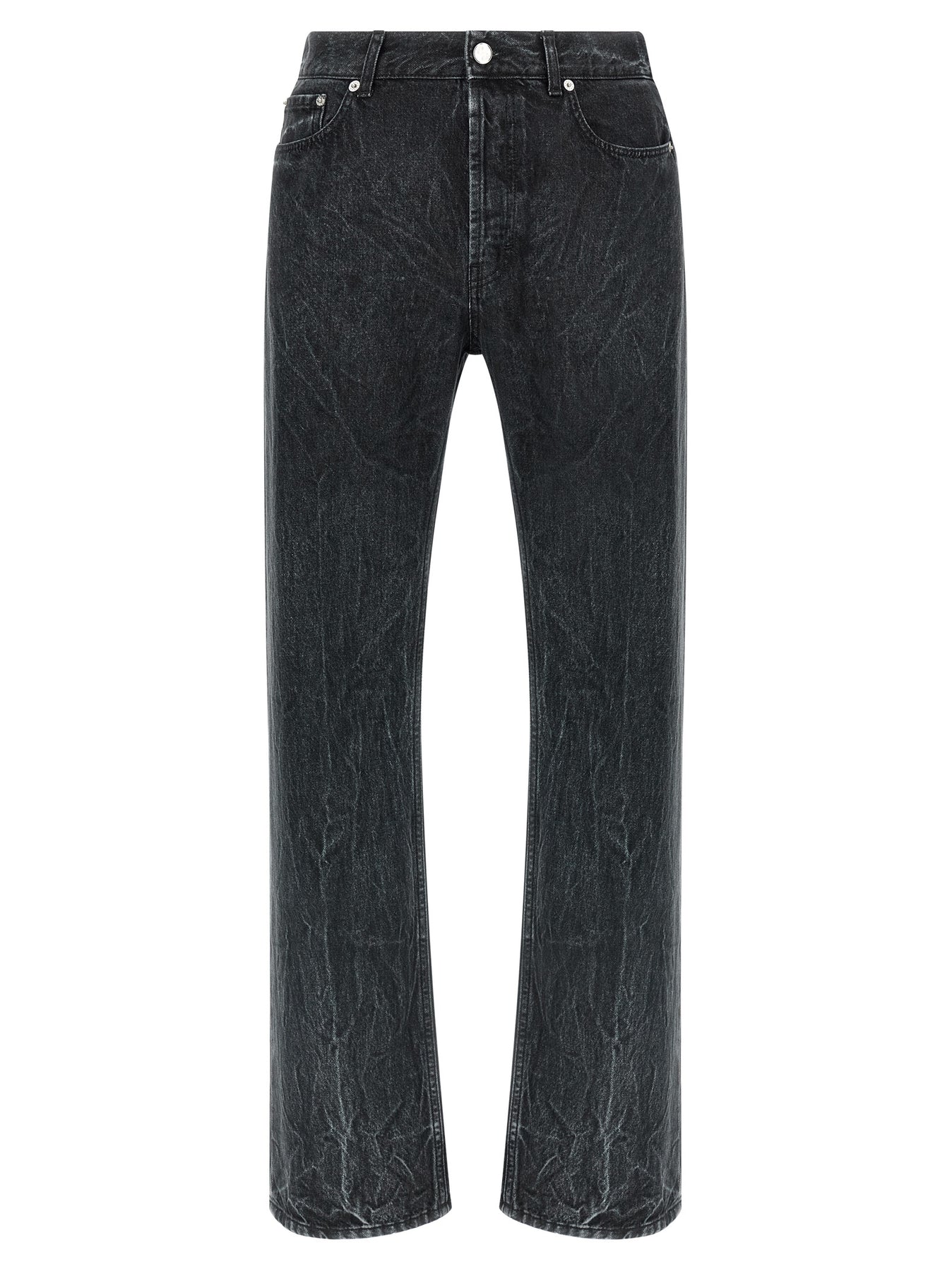 'Classic Cut' jeans in right-handed Italian cotton twill 12oz Black Marble wash, regular waist, straight leg, front button closure, five pockets, back leather logo tag.