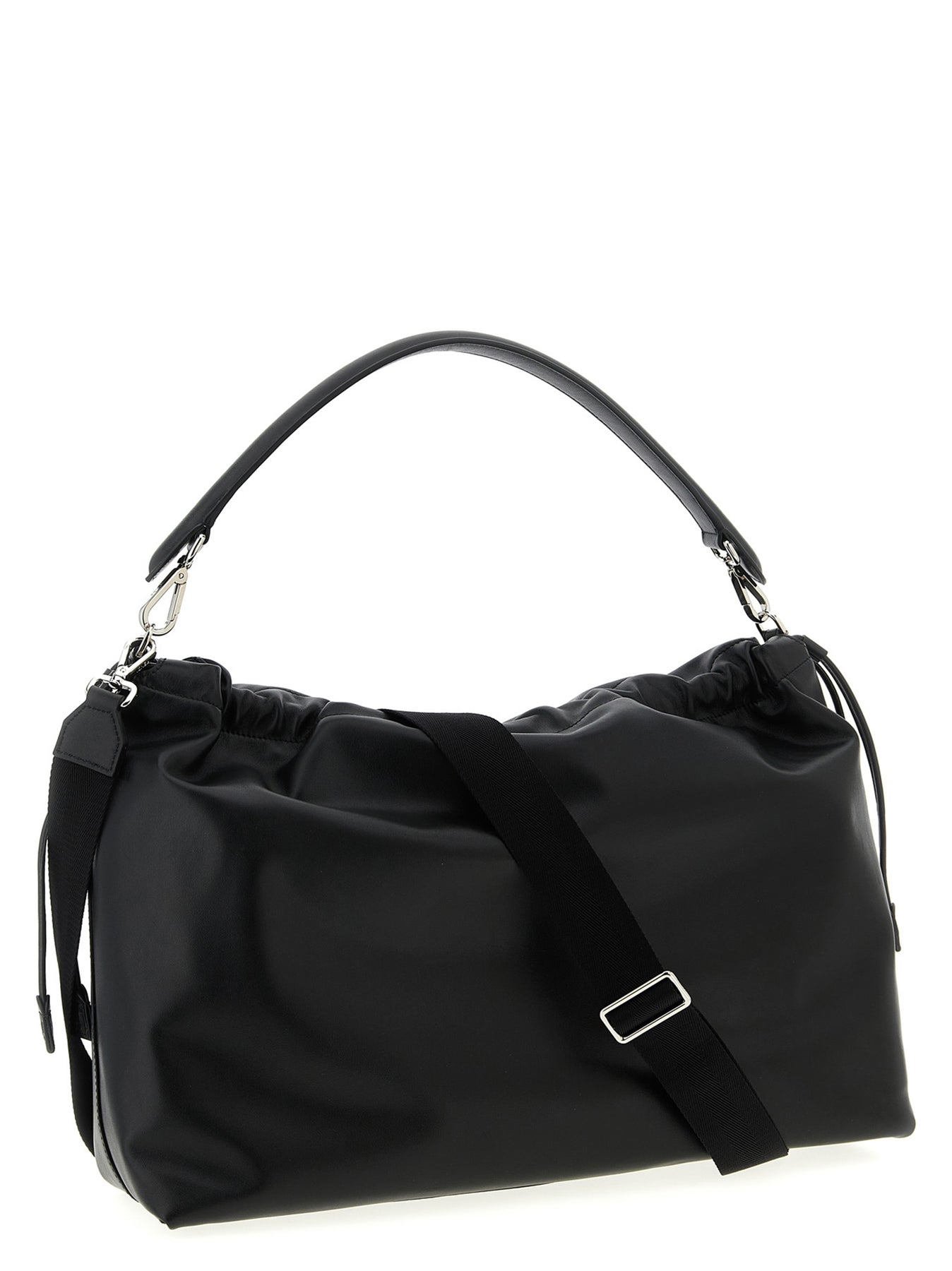 Fendi Flux' maxi shoulder bag in smooth calf leather, flap closure with FF-shaped metal tuc, inner drawstring, removable handle, adjustable and removable tape shoulder strap.