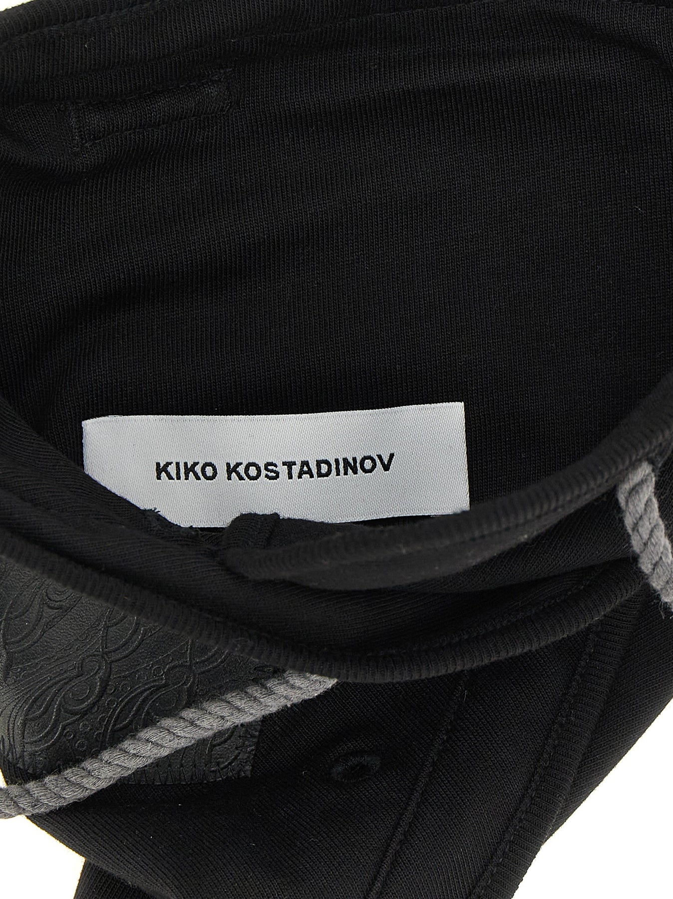 'Hatha' heavy cotton jersey crossbody bag with conical shape with tone-on-tone leather patch and drawstring closure, straps with perforated lace details and metal rivets to tie as desired.