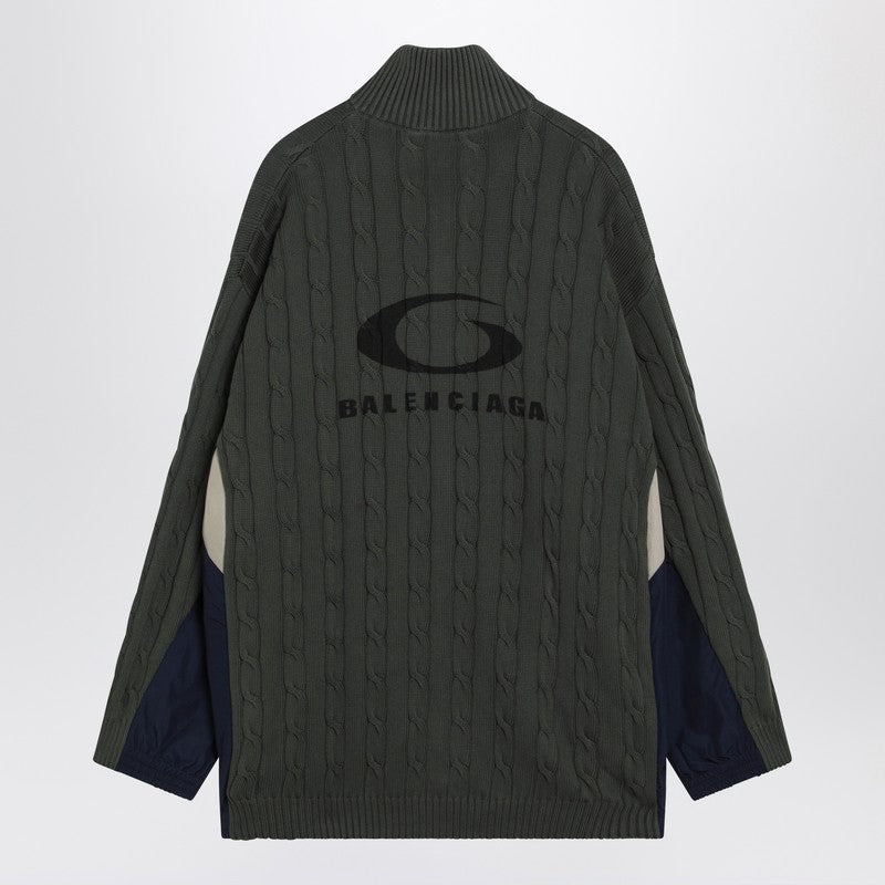Khaki Cotton And Technical Jersey Hybrid Jacket