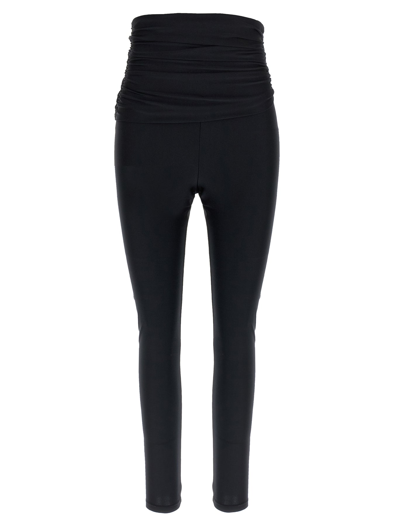 'Vicky' Shiny Lycra leggings, high waist double layer with front draping, elastic waistband.
