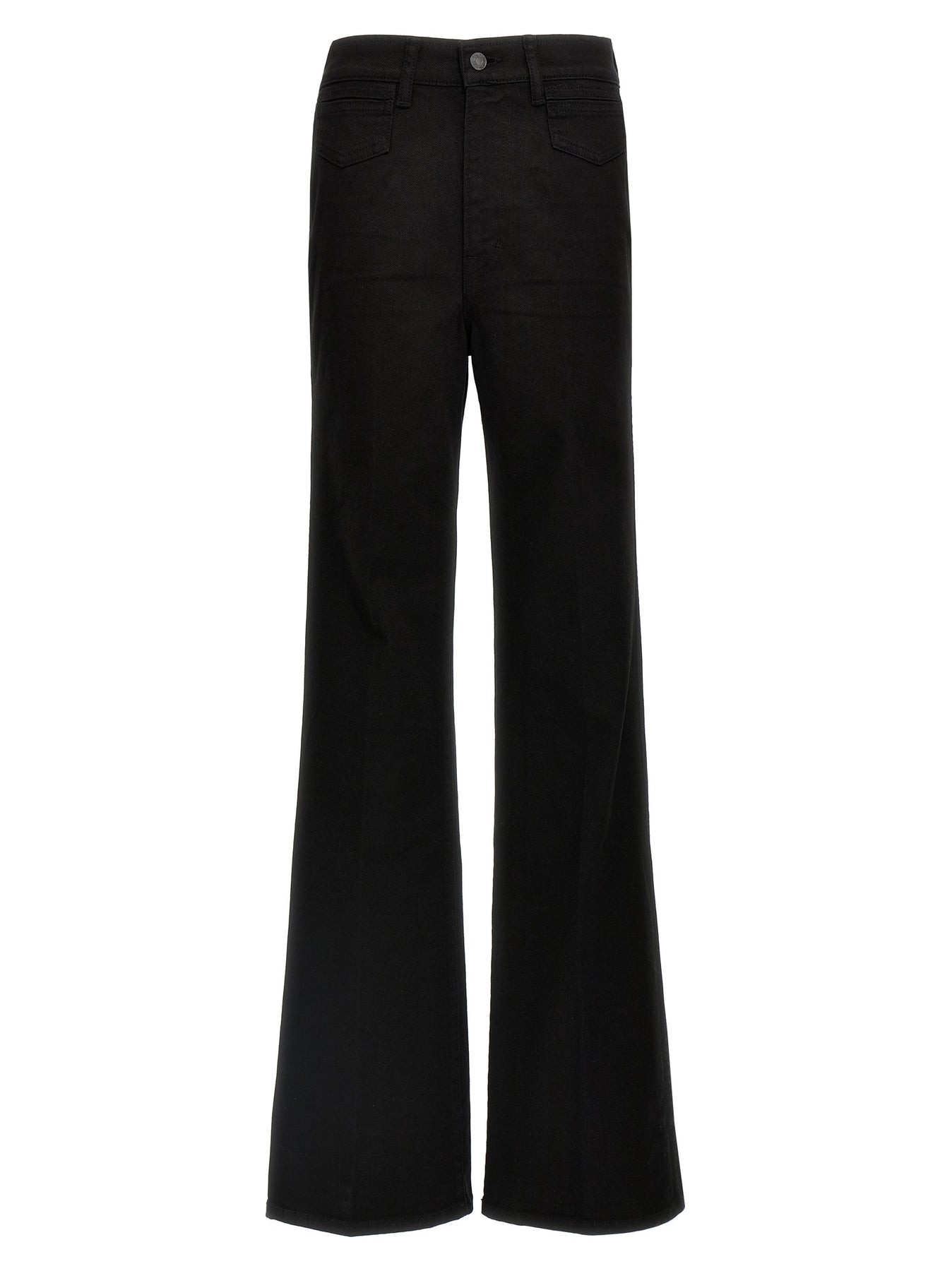 'Stretch Twill Denim Wide Flare' jeans in garment-dyed cotton denim with wide leg with flared hem, zip and button closure, pockets, tone-on-tone suede logo tag on the back.
