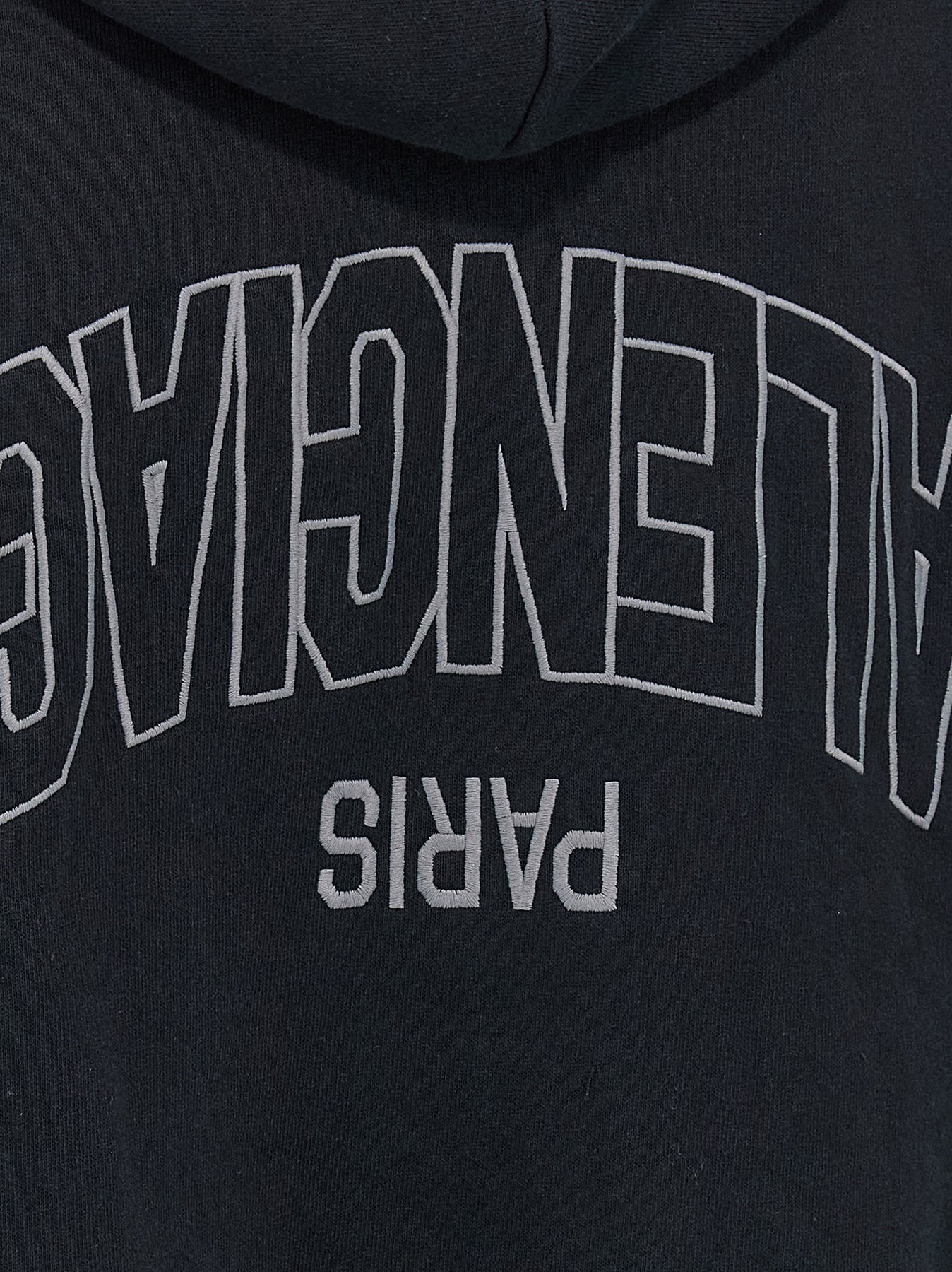 Dry faded fleece hoodie with Flipped Uni embroidery on the back, front zip closure, pockets, long sleeves with cuffs and dropped shoulders.