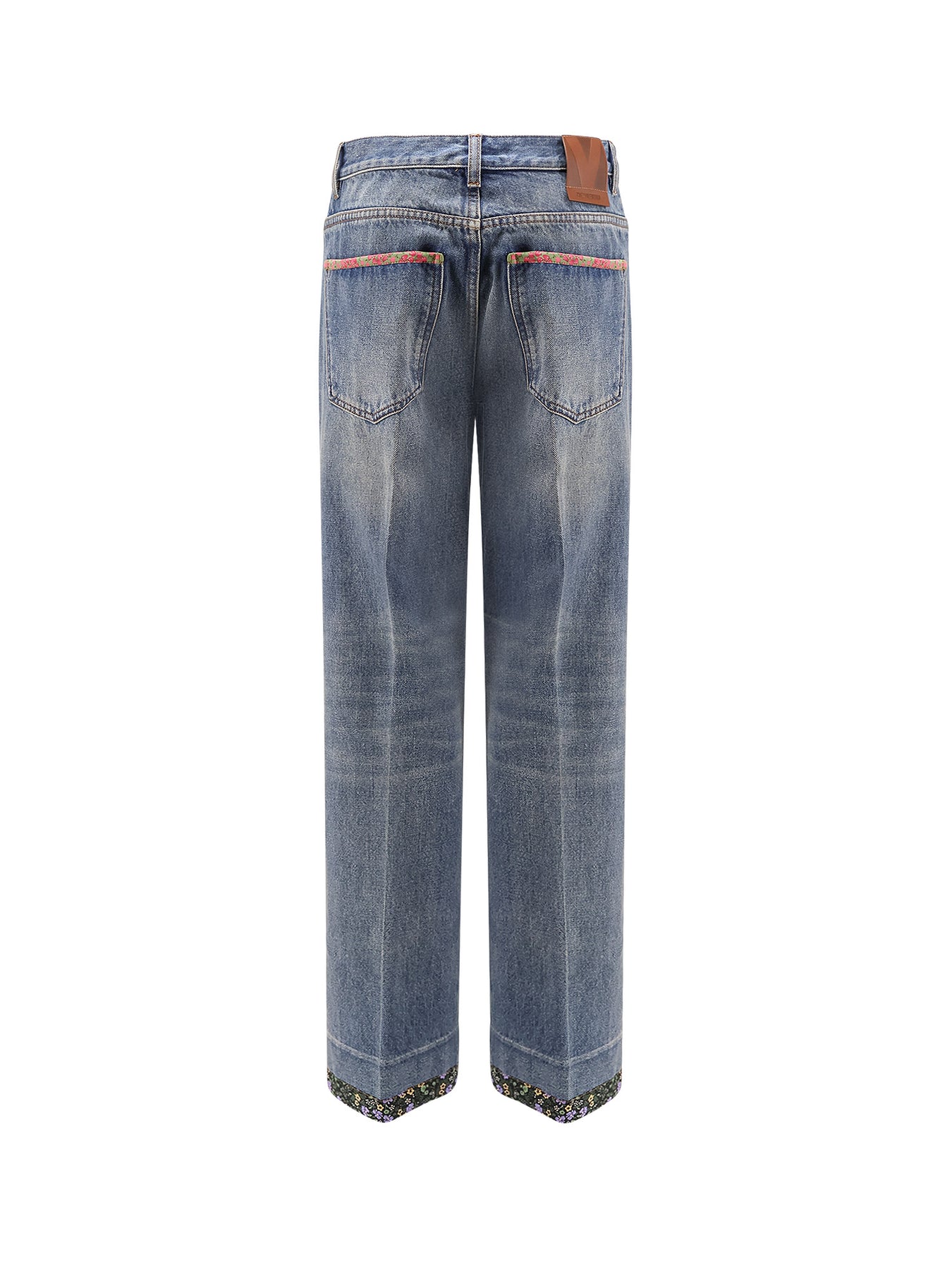 Jeans With Floral Print Fabric Border Detail