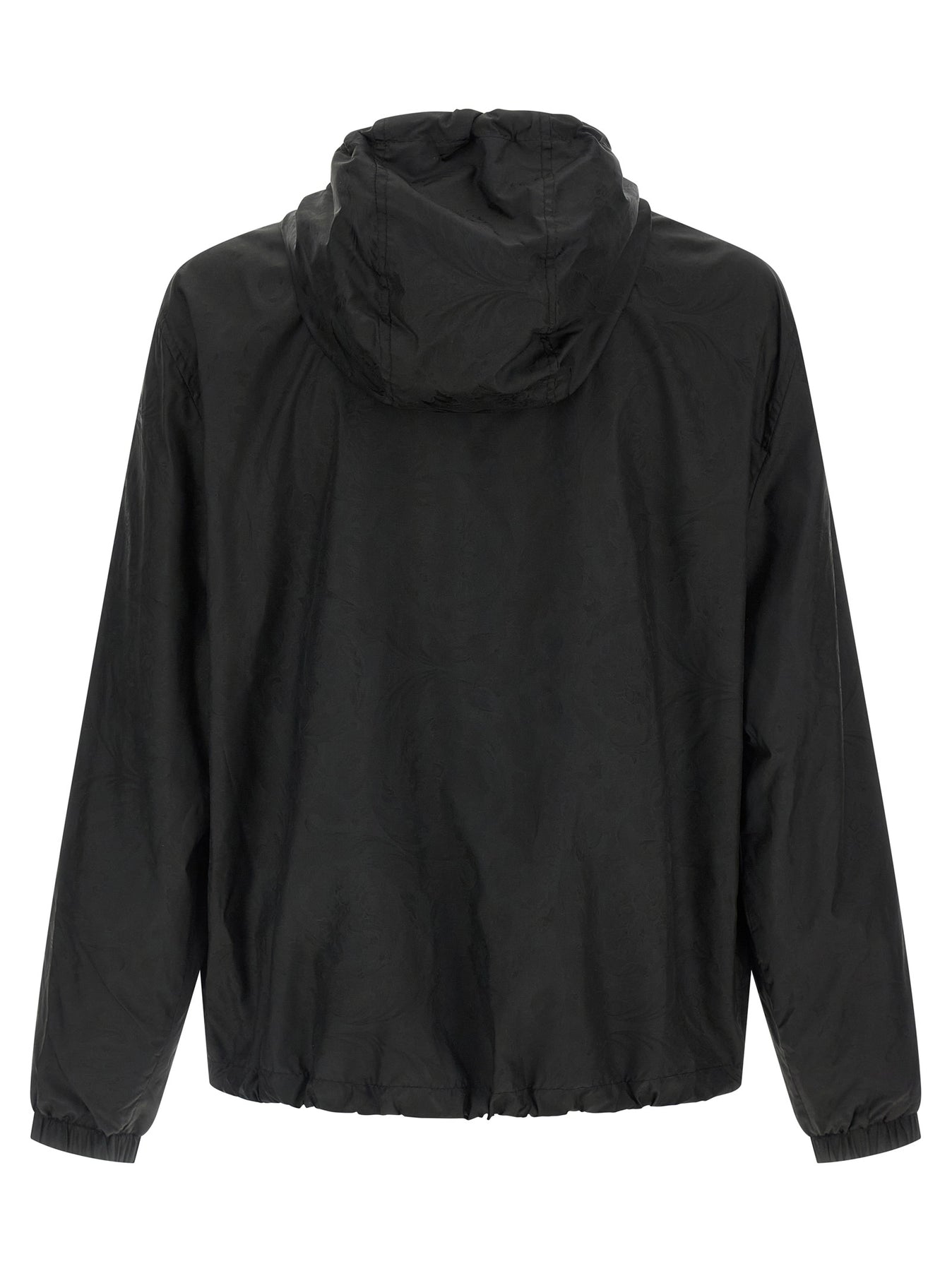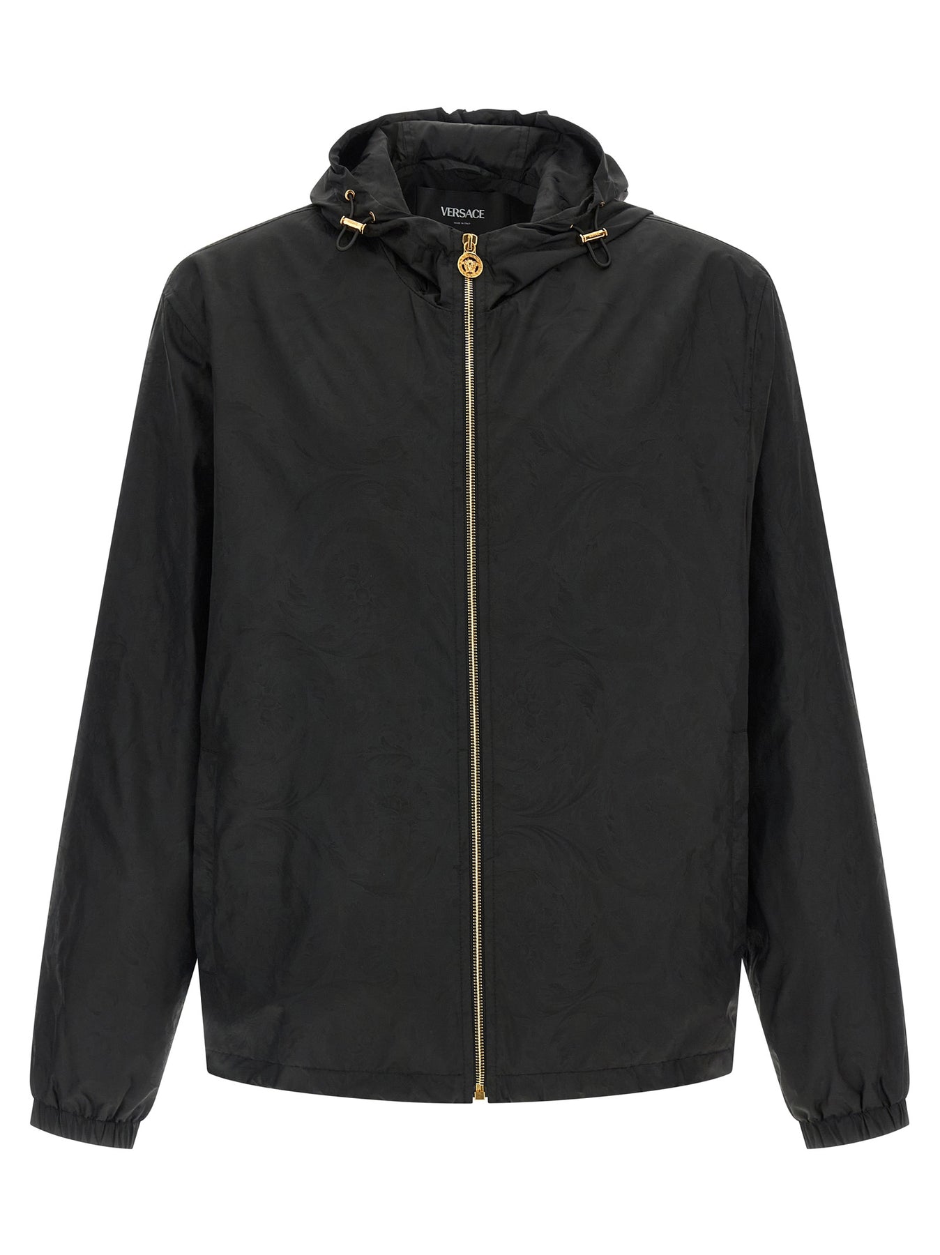 Windbreaker with tonal 'Barocco' jacquard pattern, adjustable hood, front zip closure with 'Medusa Biggie' zipper, pockets, long sleeves with elastic cuffs, drawstring on the hem.