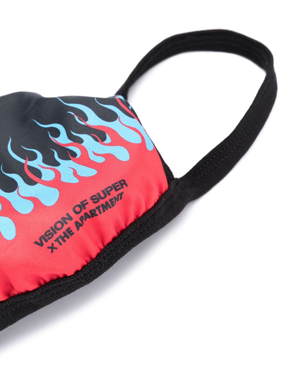 VISION OF SUPER Face Mask with double red and blue flames with the apartment logo Certified fabric. Details: Washable and reusable Certified fabric Double purple and pink flames Vision of the Super Logo breathable Precautionary filter mask Double layer Certified fabric art. 16, paragraph 2, Legislative Decree 18/2020 Composition: INSIDE: 94% cotton - 6% lycra OUTSIDE: 80% polyester - 20% elastane