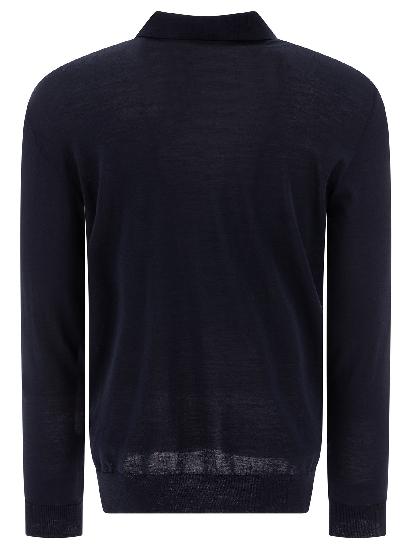 Wool Long-Sleeved Polo Shirt Polo Shirts Blue
