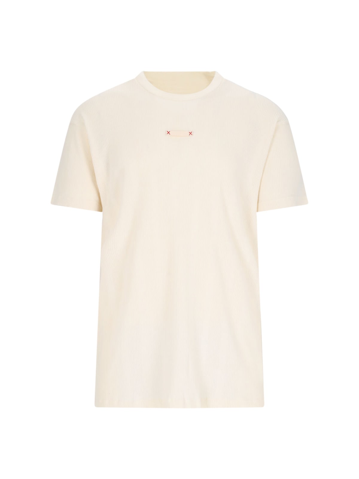 Crew neck T-shirt with ribbed fabric and applied logo