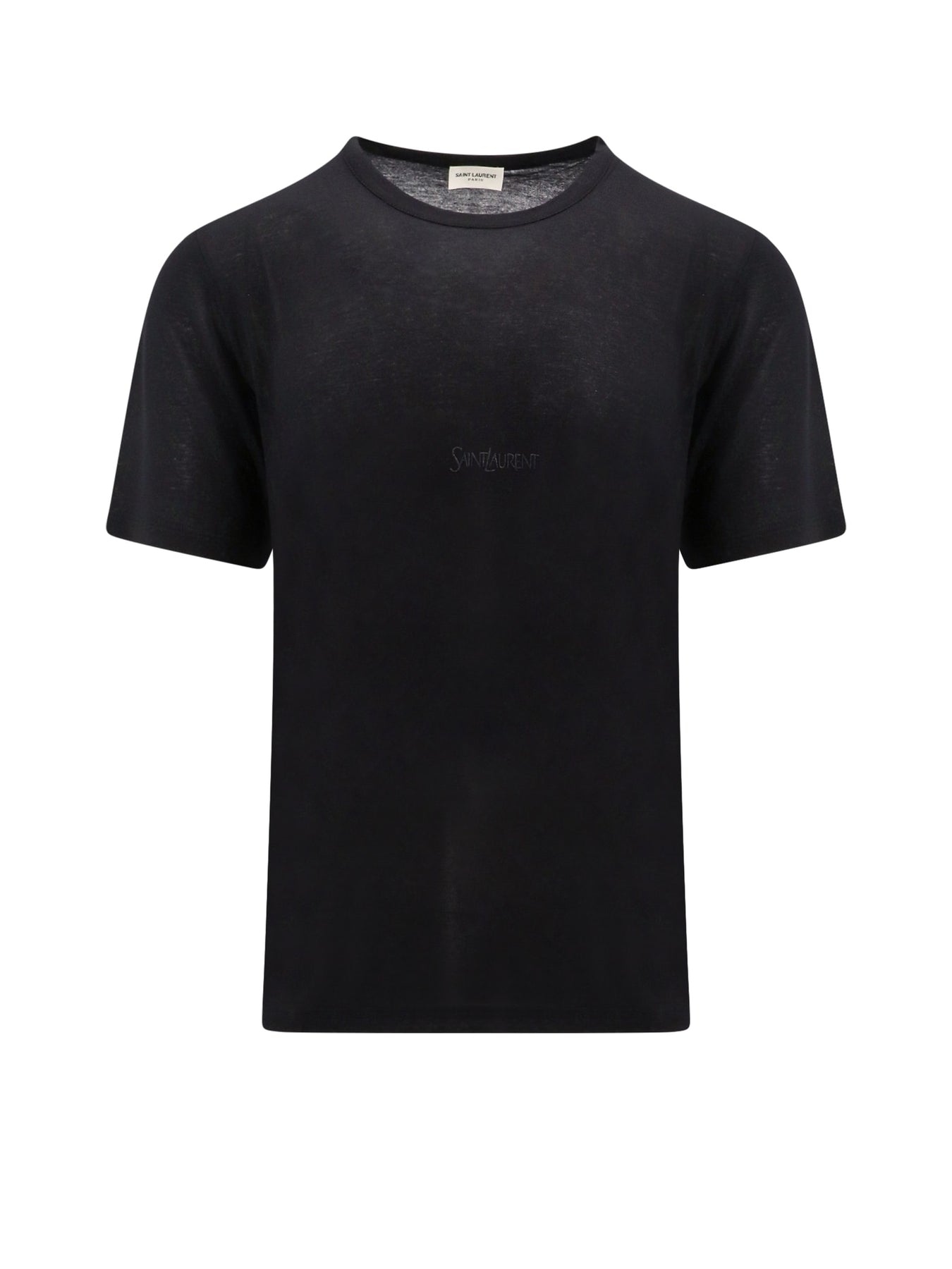 Semi-transparent, short-sleeved crew neck T-shirt in responsible viscose, with tone-on-tone SAINT LAURENT embroidery on the chest.