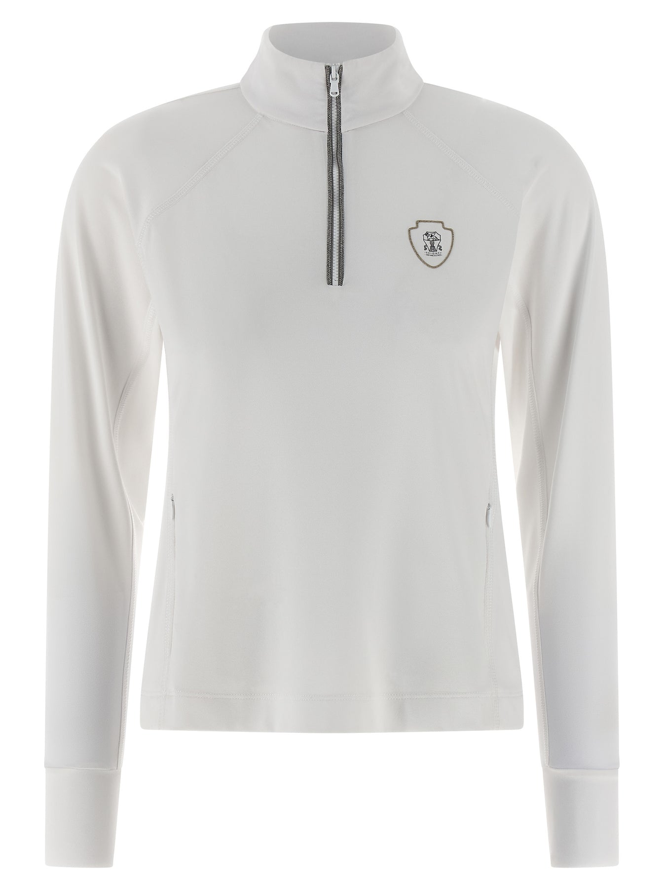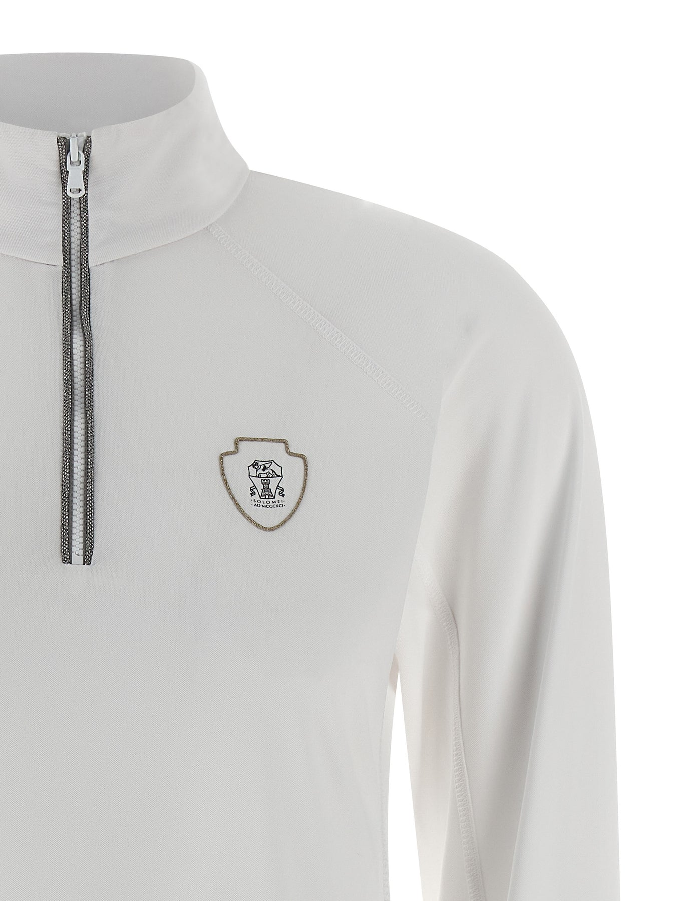Techno piquet sweater, embroidered Solomeo coat of arms on the front, high neck, 'Precious Half Zip' with Monile, pockets, long sleeves with cuffs.