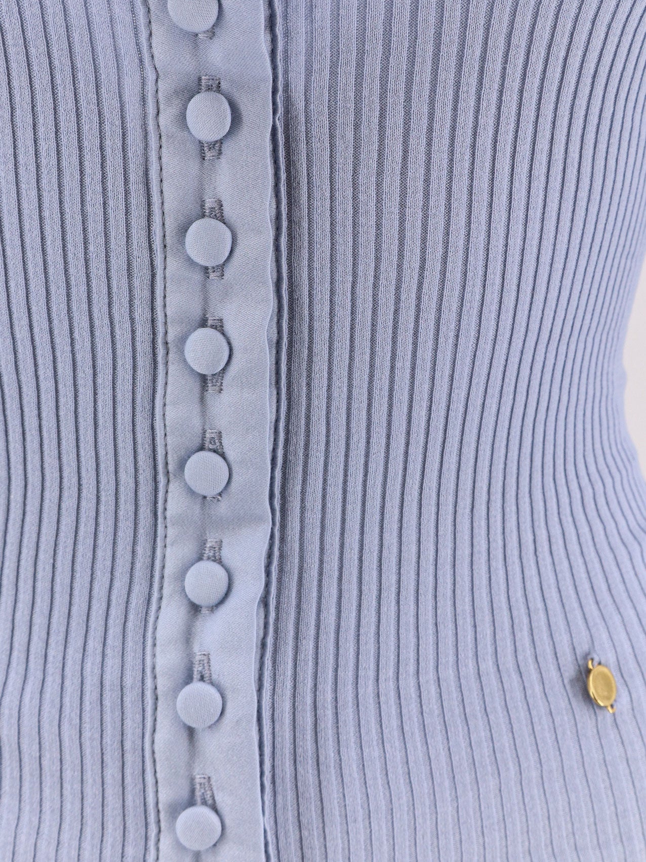Covered button closure Round neckline Long sleeves Metal logo charm at the hem 100% cotton SKU: CH25WJC0118549U
