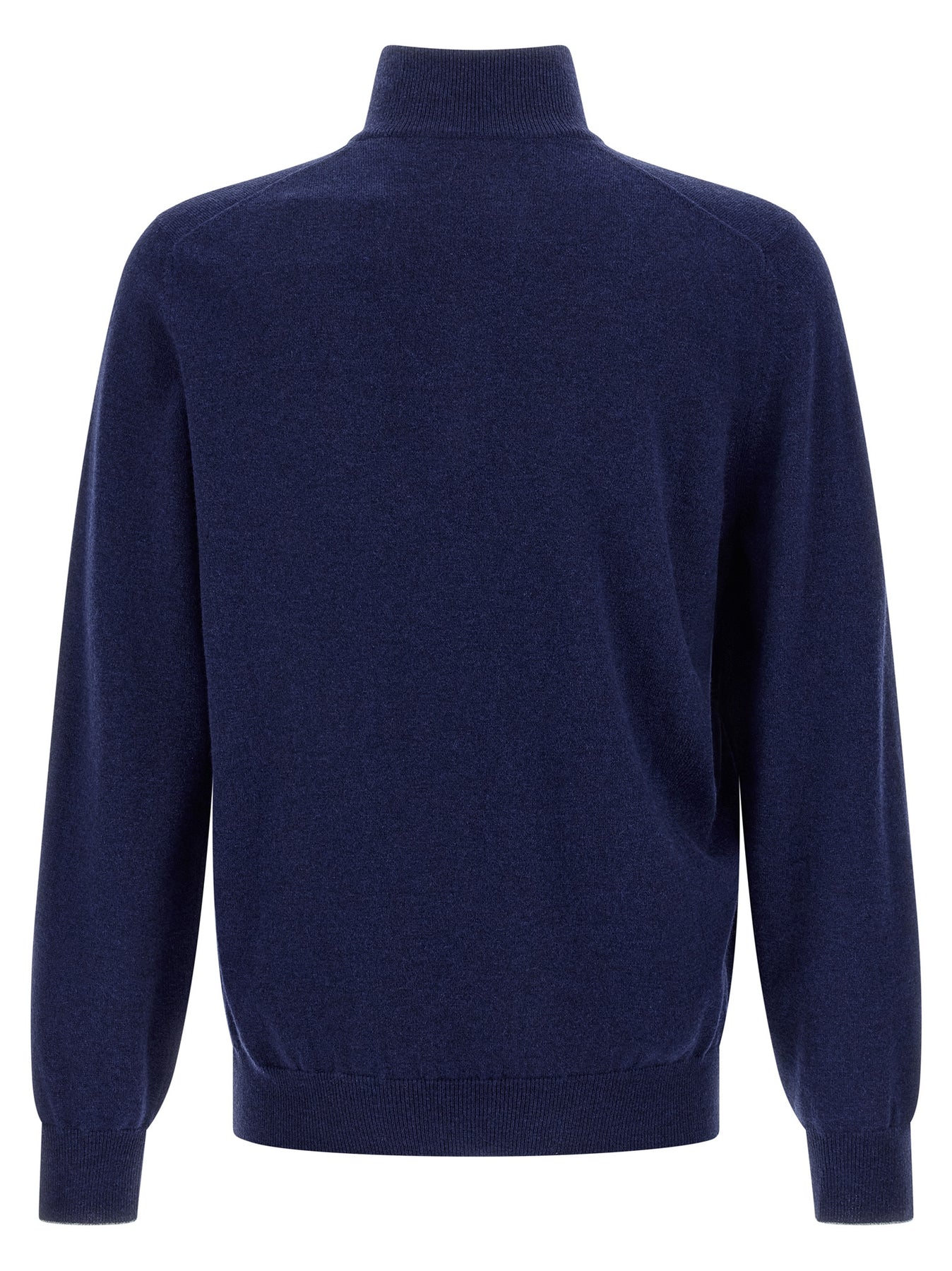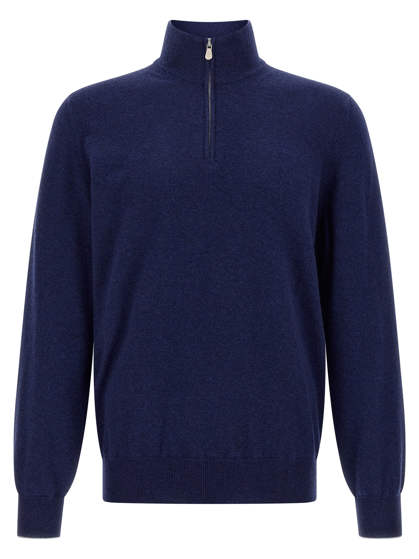 Cashmere sweater with contrast details, high neck, front half-zip, long cuffed sleeves.