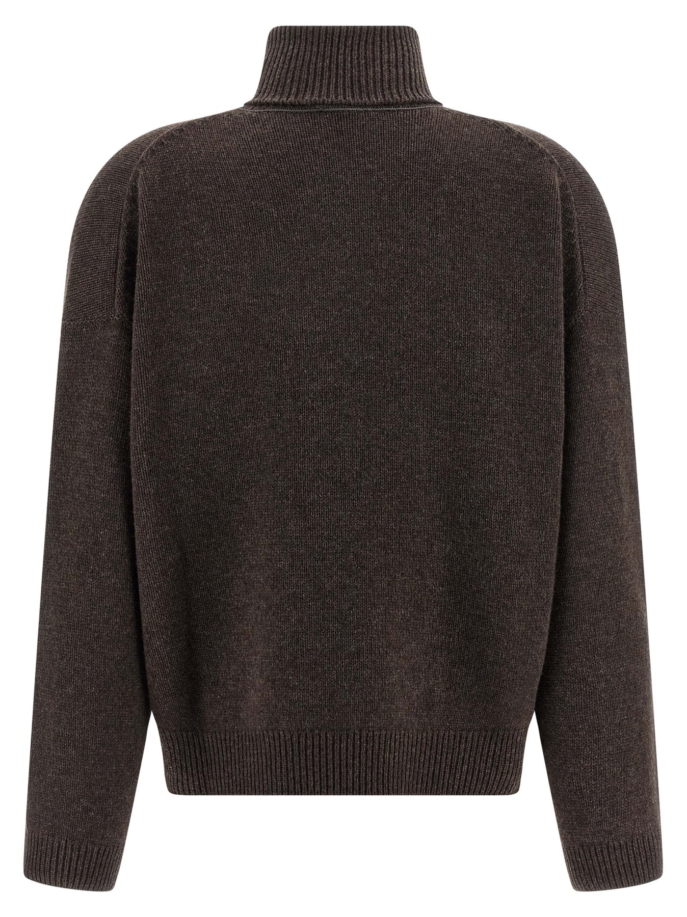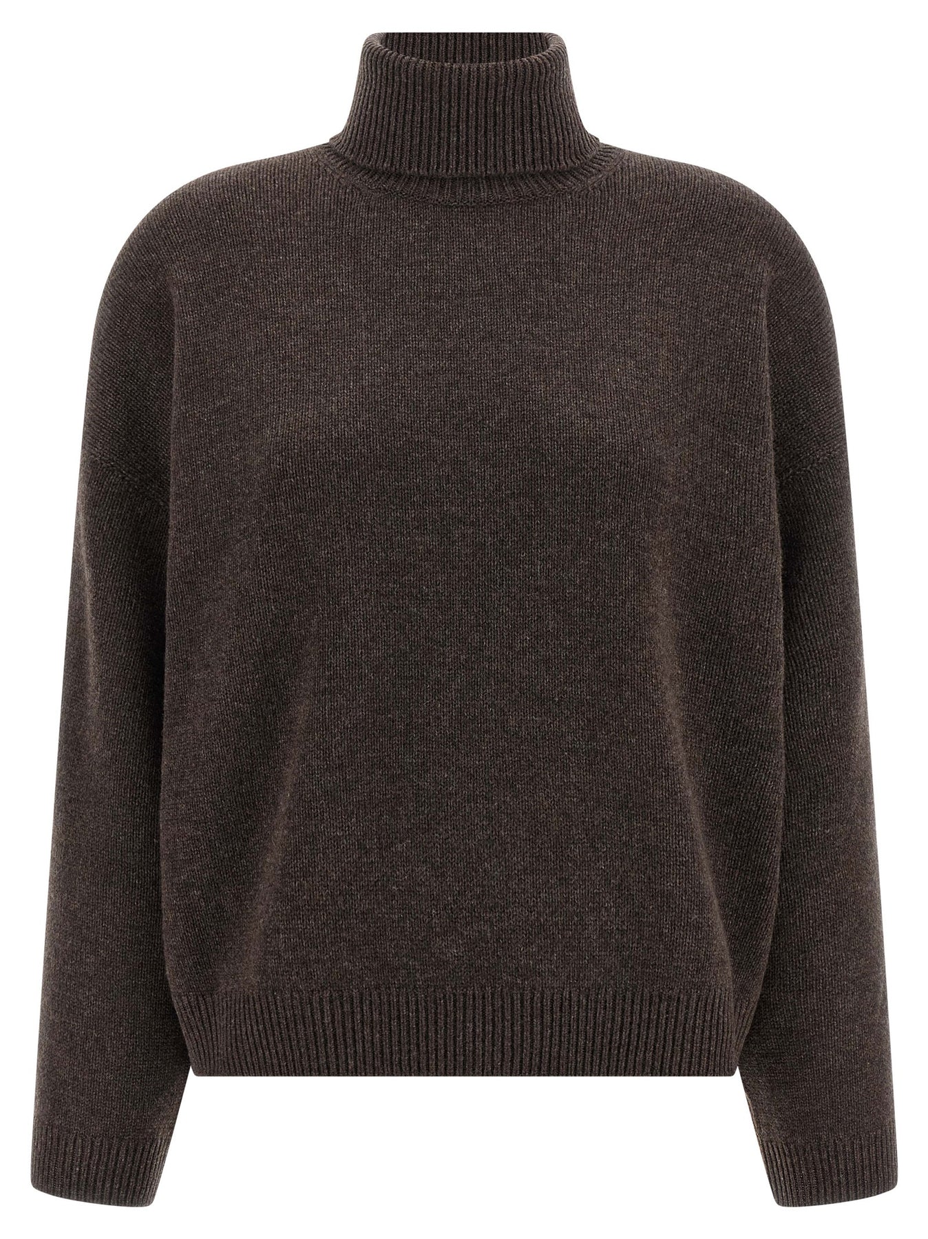 Cashmere sweater with turned-up high neck with back Monile detail, long wide sleeves with cuffs and dropped shoulder.