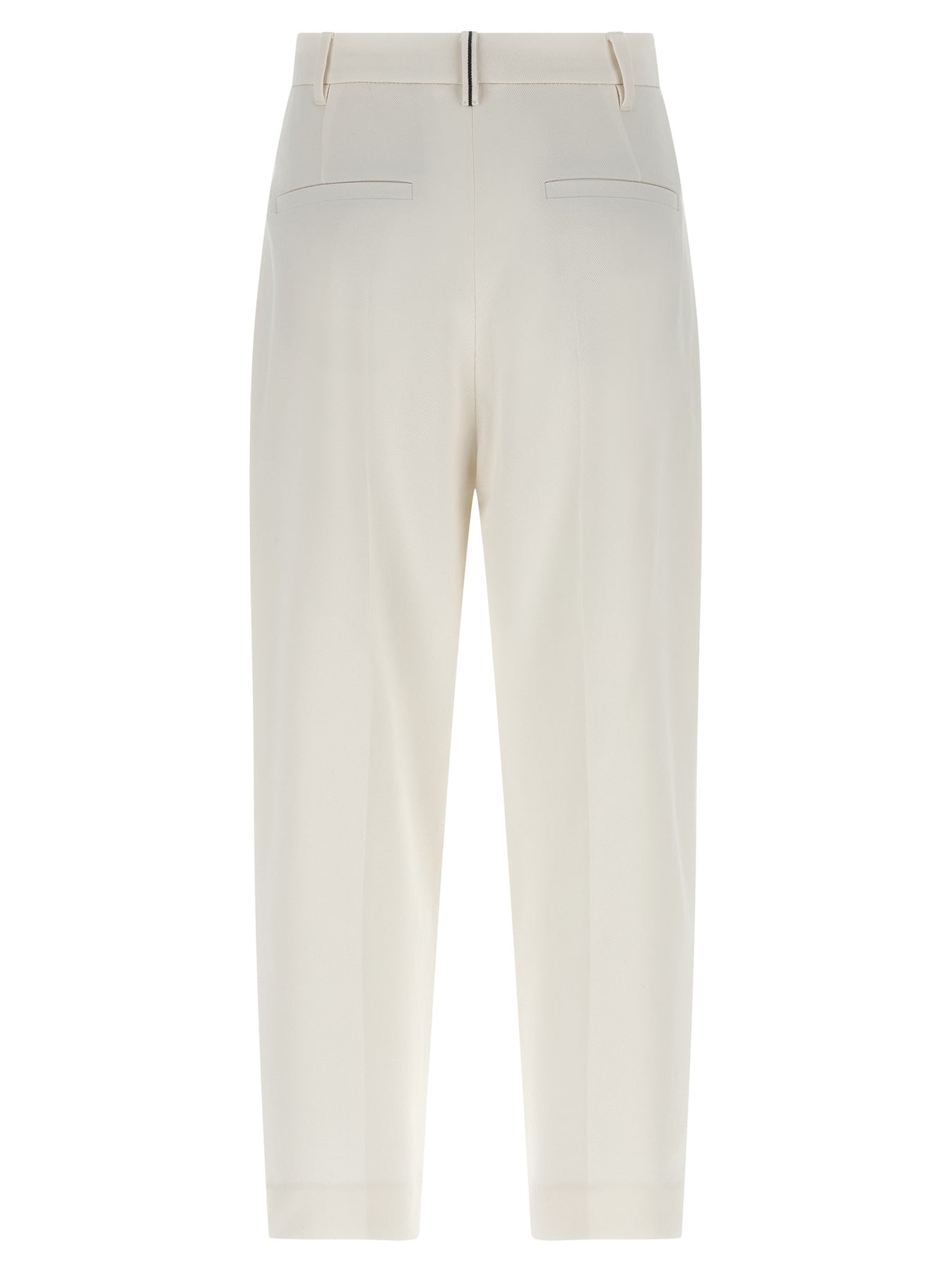 'Slouchy' pants in stretch cotton cover, double pleats, stretched pleat, zip hook and button closure on the front, pockets, back Monile detail.