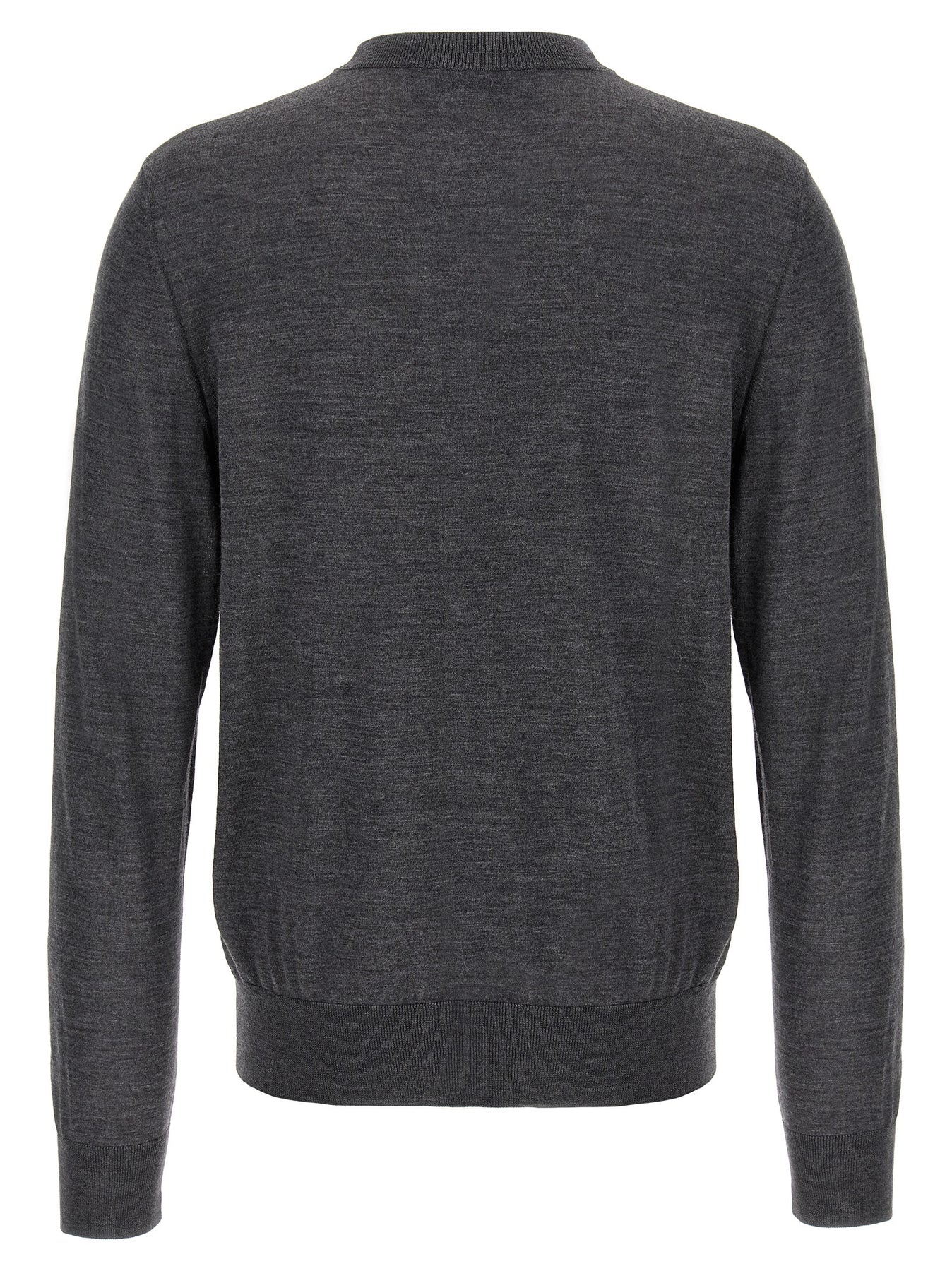 Thin wool sweater, crew neck, logo embroidery detail, long cuffed sleeves