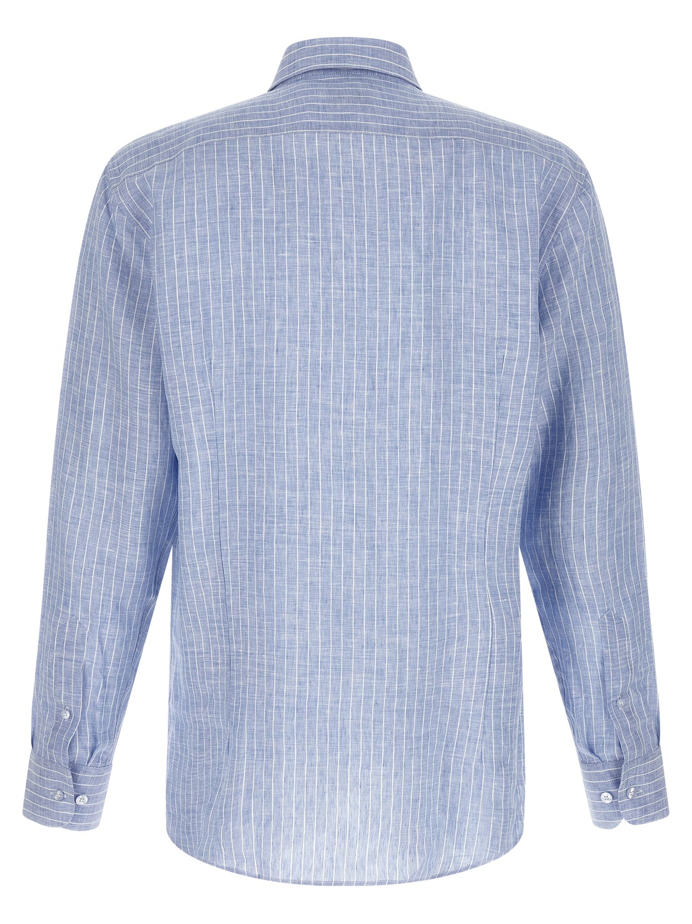 Striped linen shirt, tone-on-tone 'Pegaso' logo embroidery, front button closure, long cuffed sleeves.
