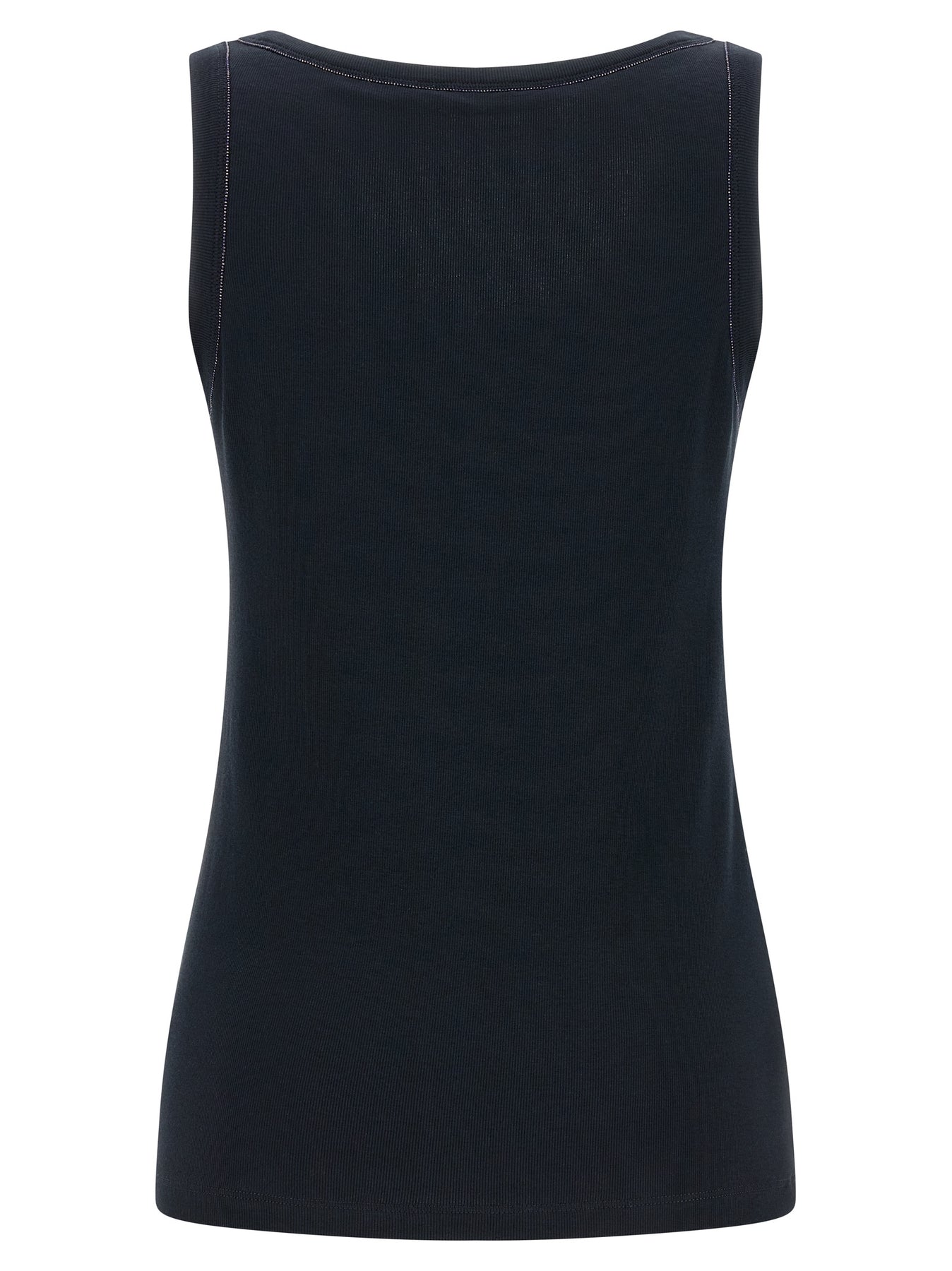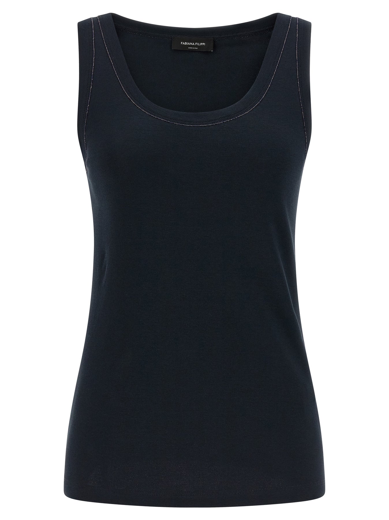 Sleeveless top in slightly stretch cotton blend with round neckline, with jewel detail on the edges.