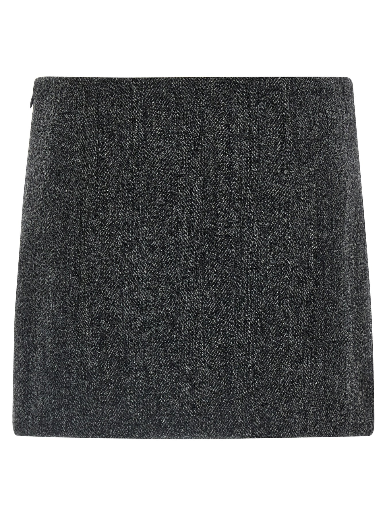 'Lowolf' wool and cotton mélange miniskirt, front split, side zip closure, viscose blend lining.