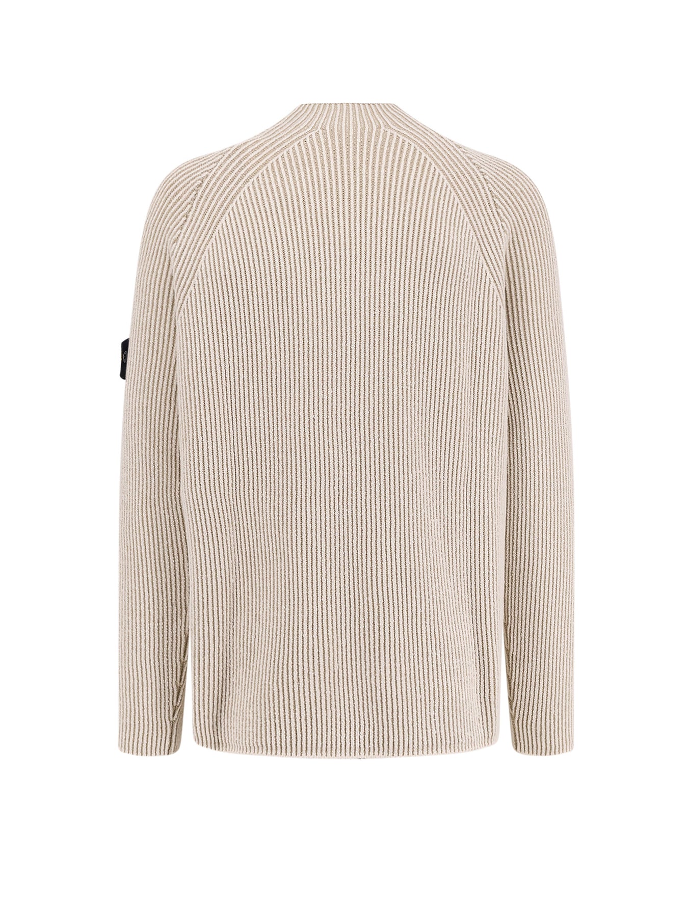 Ribbed processing Mock neck Long raglan sleeves Stone Island patch on left sleeve 57% certified virgin wool 35% cotton 7% polyamide 1% elastane SKU: K2S155100023S00L7V0093