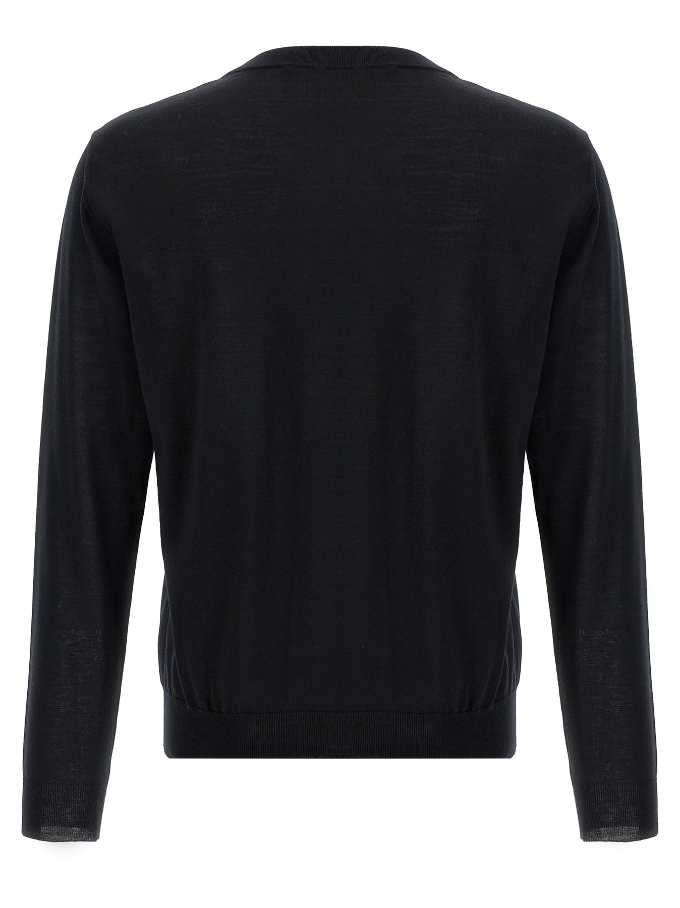 Light wool sweater with tone-on-tone logo embroidery on the front, crew neck, long cuffed sleeves.
