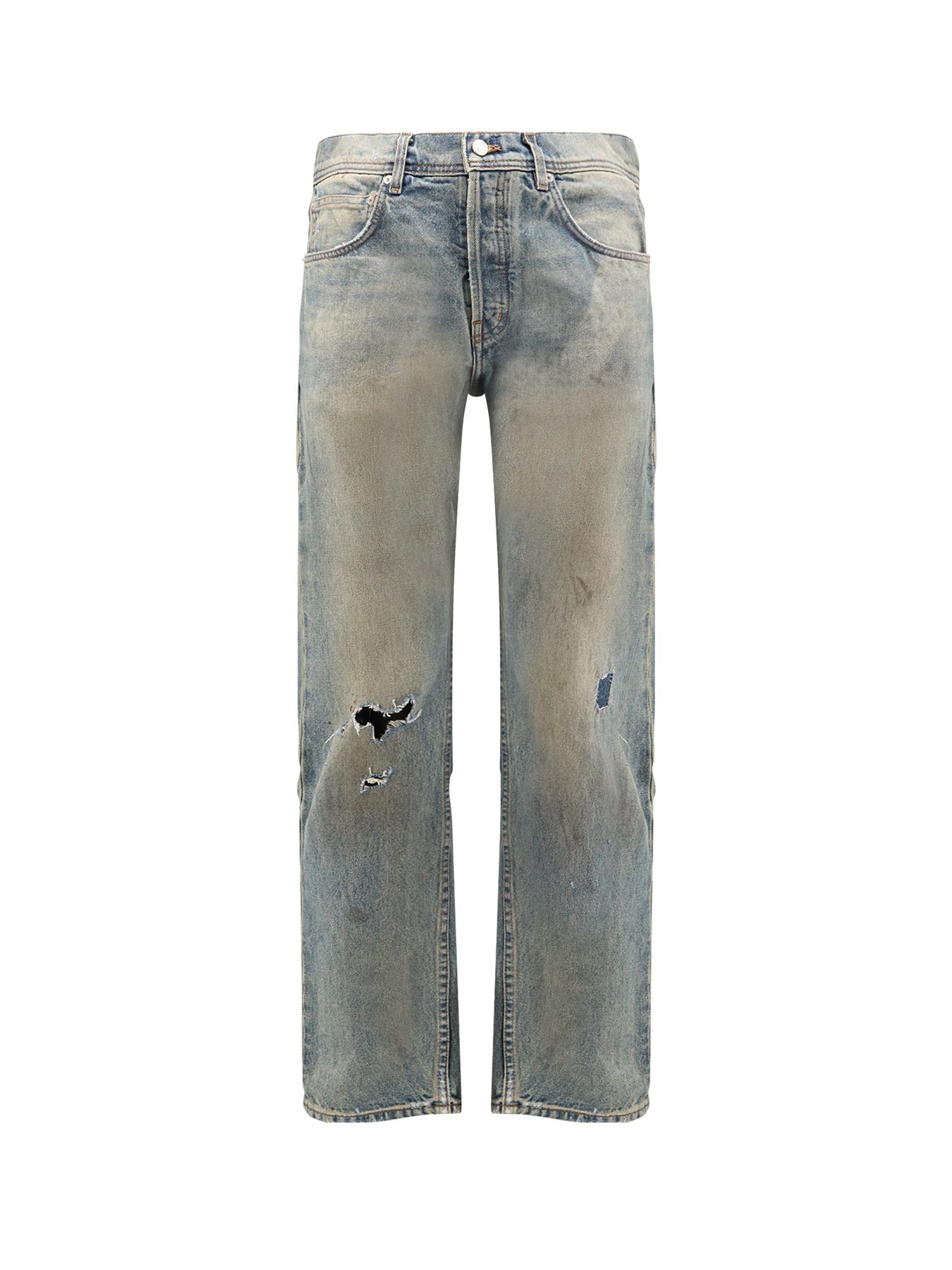 Straight Leg Jeans With Destroyed Effect