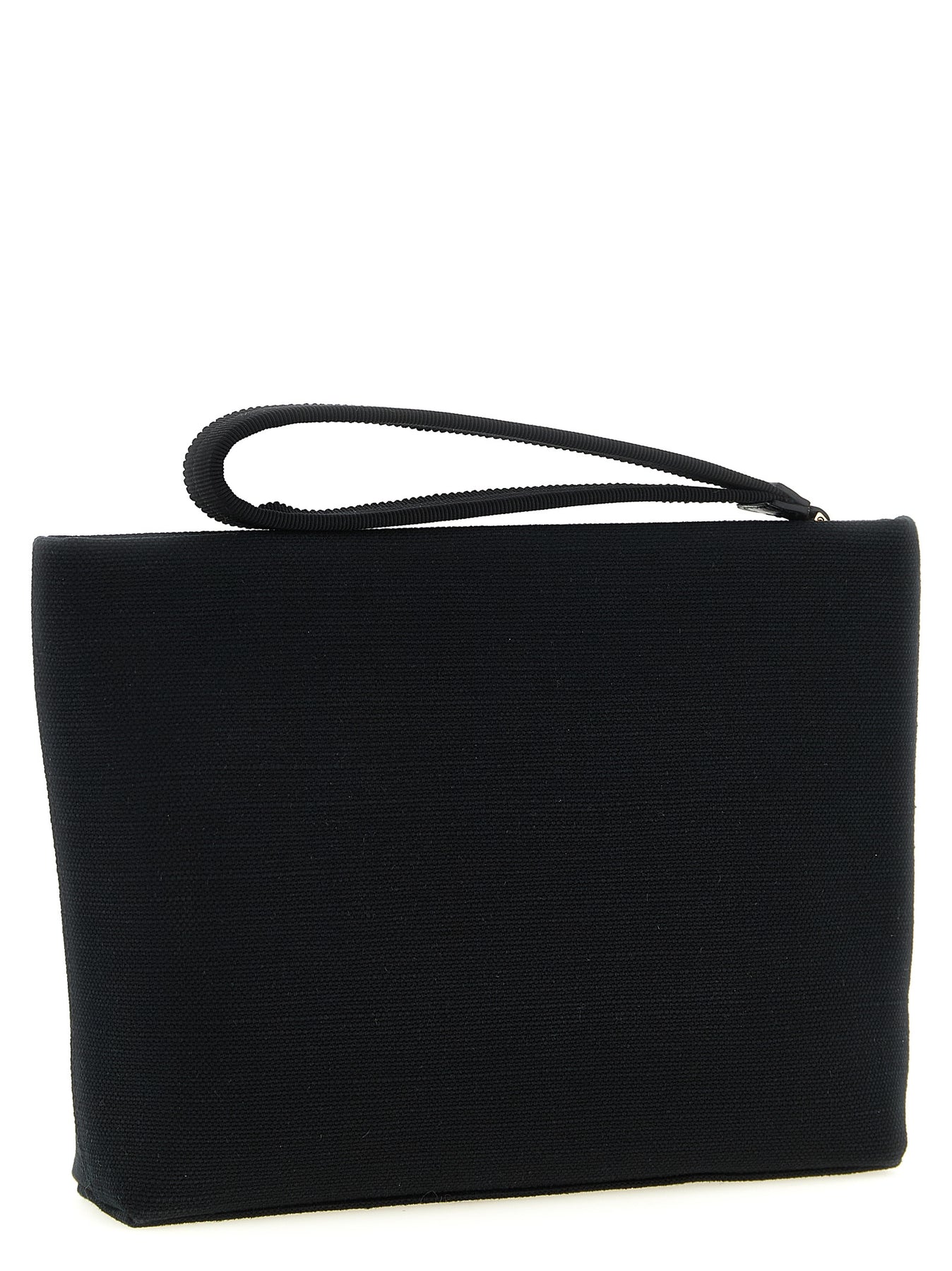 Small cotton canvas clutch bag with front 3D 'Givenchy Tape' print, top zip closure, leather handle covered in tone-on-tone grosgrain.