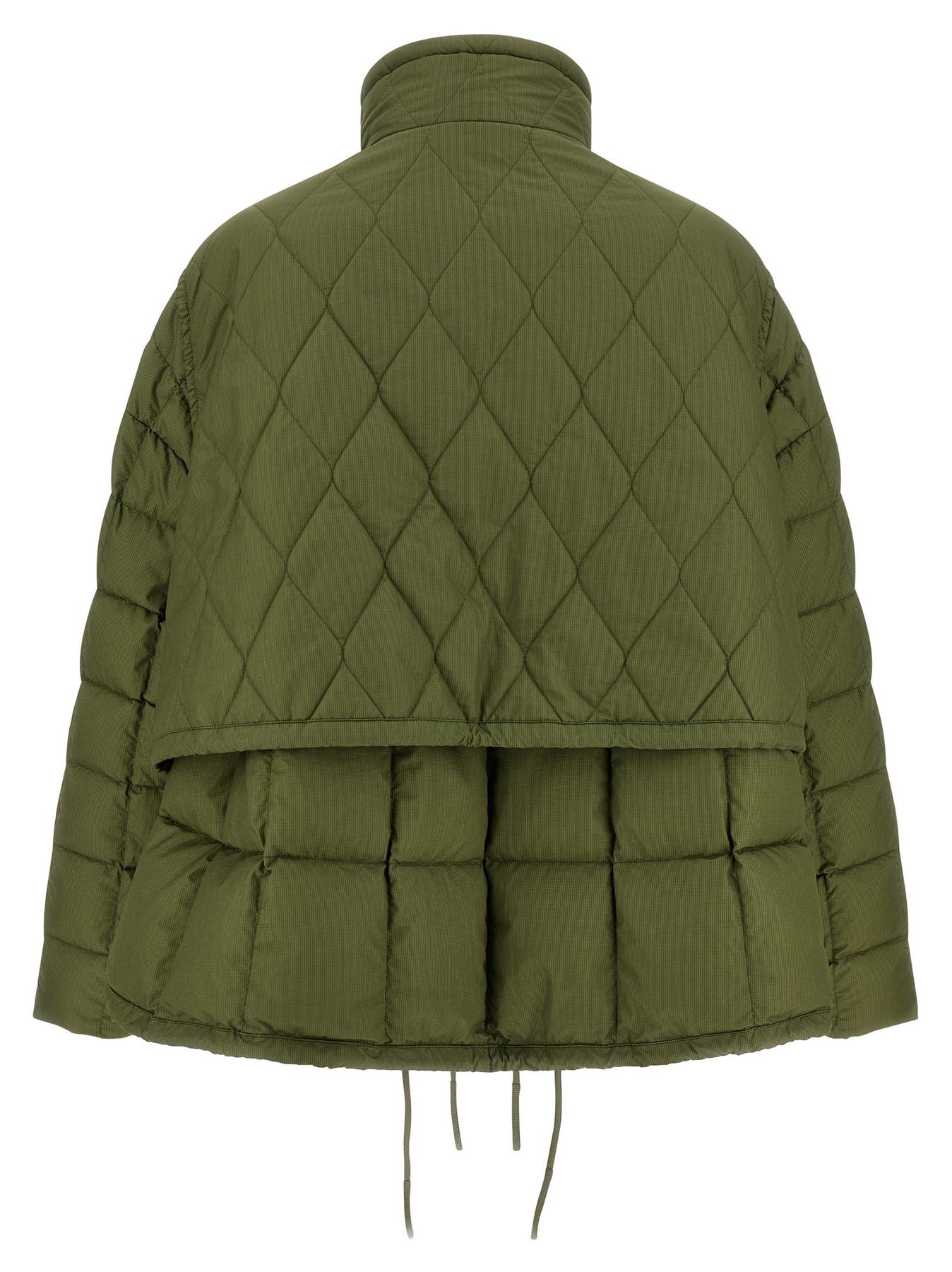 'Ember' jacket in micro checked quilted technical fabric with goose down padding, double layer vest, flared silhouette, standing collar, front zip closure, multipockets, long sleeves with dropped shoulders, double drawstring on the hem.