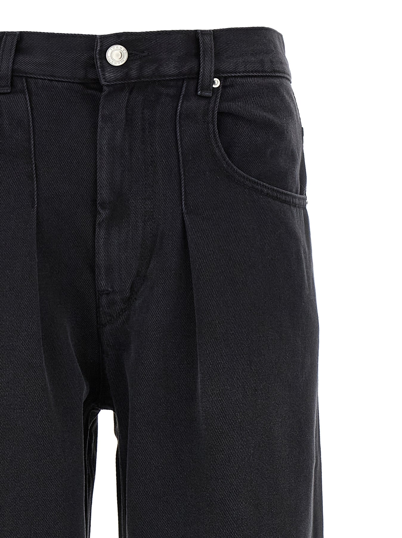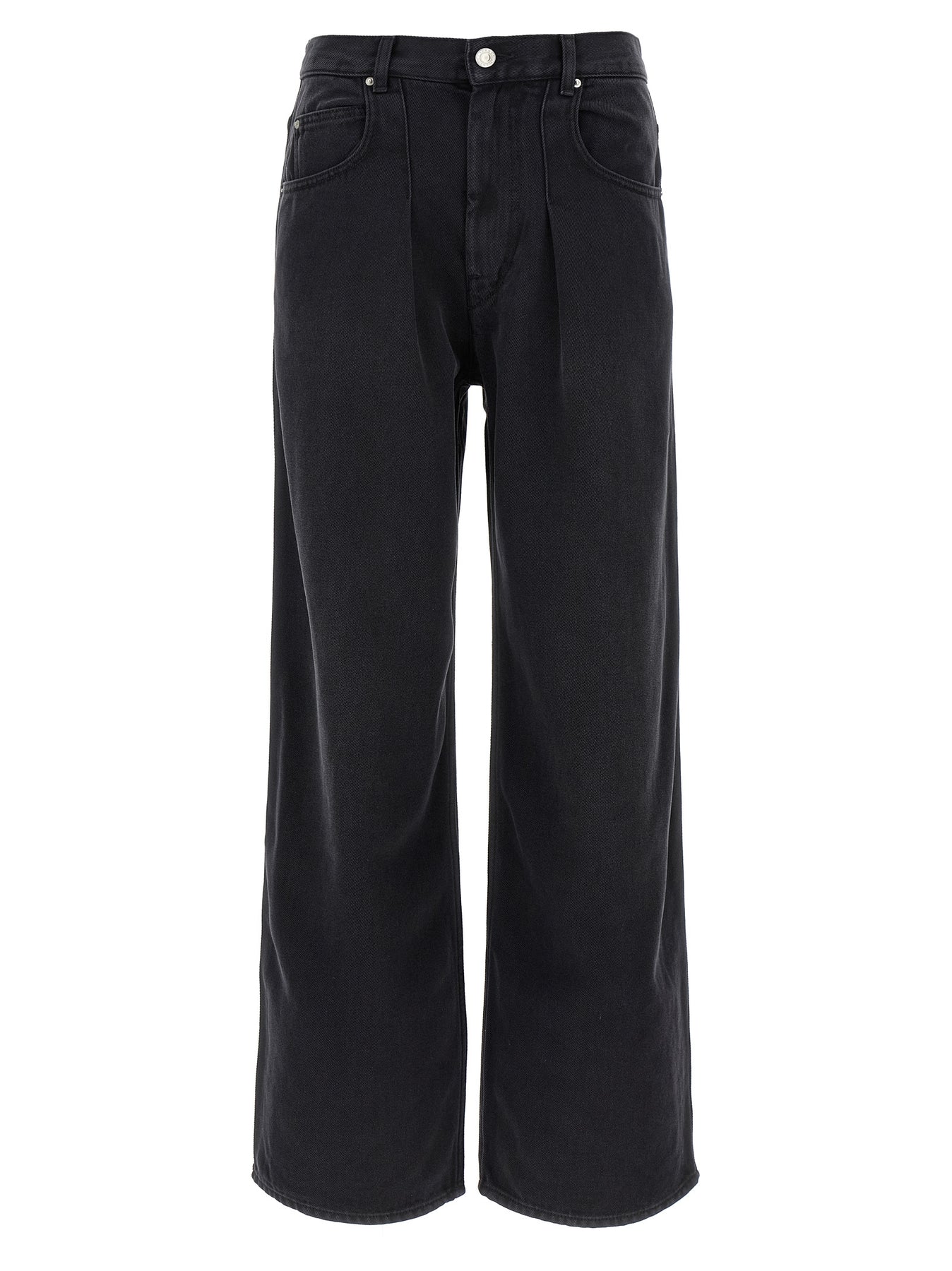 'Rodayna' jeans in garment-dyed cotton denim with pins, high waist, five pockets, front zip closure, wide leg, back logo tag.
